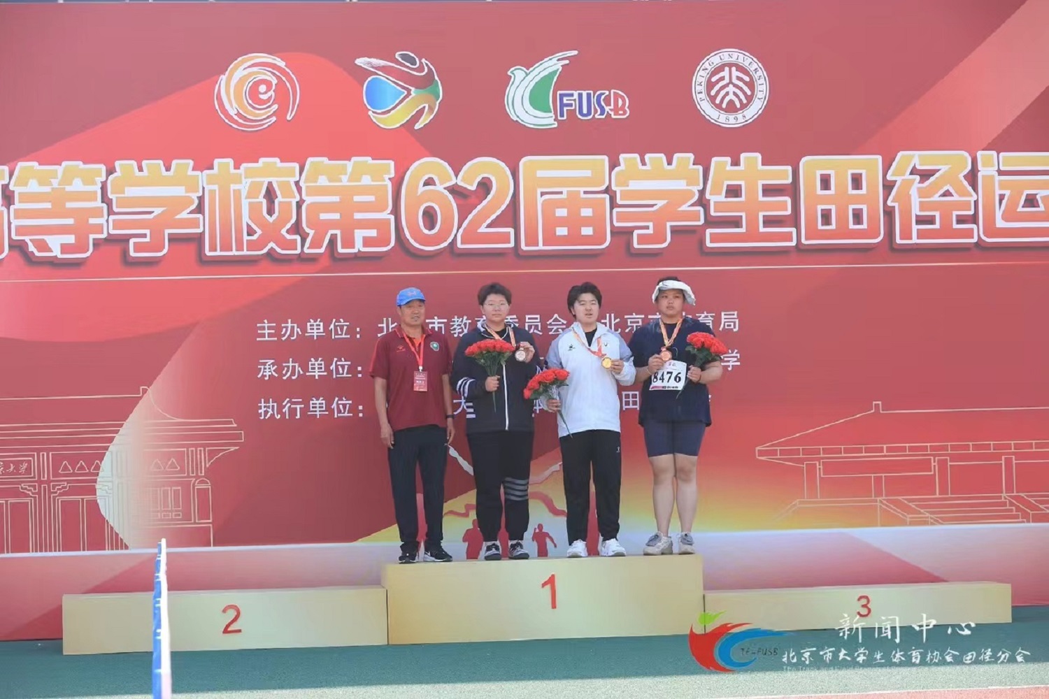 5月18日,由北京市教育委員會、北京市體育局主辦的首都高校第62屆春季田徑運動會開幕式在北京大學五四田徑場舉行,北京市人民政府副秘書長王穎捷,北京市委教育工委副書記、北京市教育委員會主任李奕,北京大學黨委書記郝平,北京大學黨委常委、副校長、教務長王博,北京市教育委員會副主任王攀出席開幕式,我校黨委副書記李中奇帶隊參加開幕式。我校田徑隊30名隊員在魏靜、于洪、邵喆三位教練的帶領下,共斬獲1枚銀牌、6枚銅牌,女團團體總分第8名,榮獲“體育道德風尚獎”。