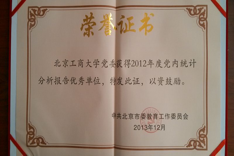 學校榮獲2012年“黨內統計分析報告優秀單位”稱號