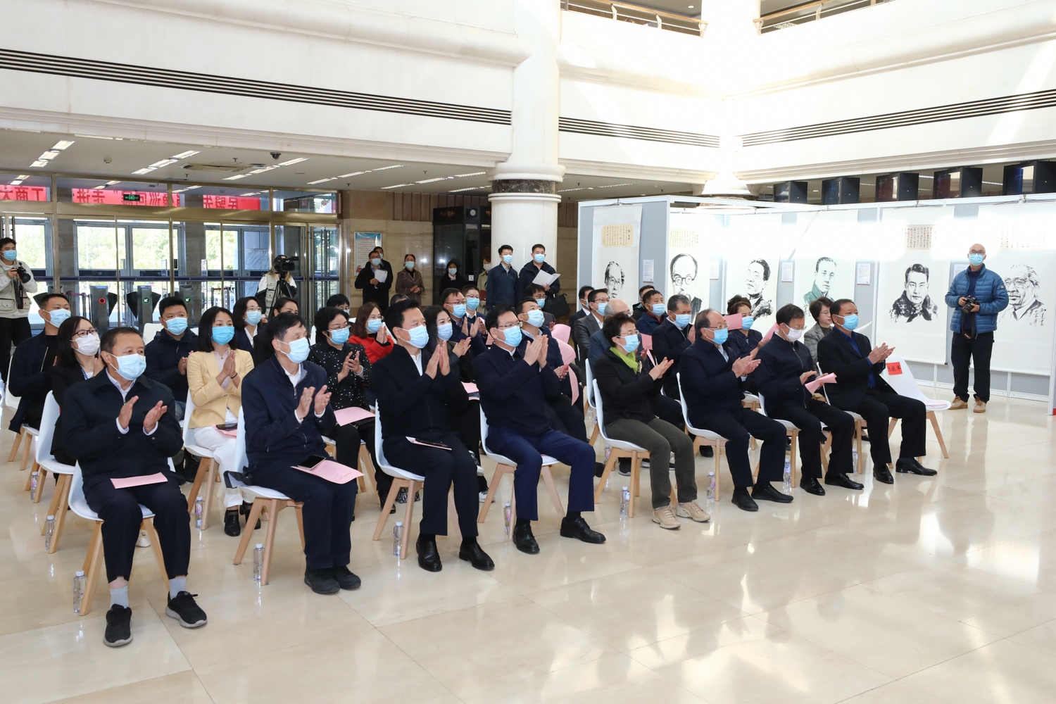 啟動儀式后,各位領導嘉賓和與會人員一起參觀民盟先賢肖像展。本次展覽共計展出30余幅作品,以書畫藝術形式再現民盟先賢風范,弘揚黨盟合作優良傳統。“民盟先賢肖像巡回展”走進北京工商大學活動于10月9日至15日在良鄉主校區圖書館大廳舉行。