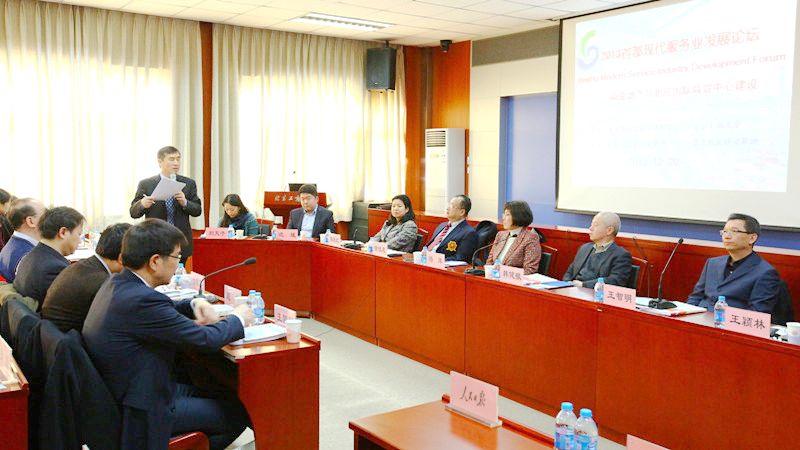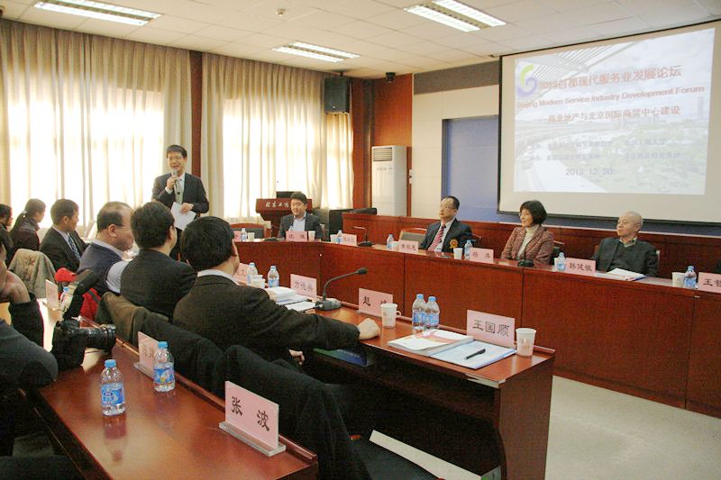 12月20日,“2013首都現代服務業(yè)發(fā)展論壇——商業(yè)地產與北京國際商貿中心建設”在阜成路校區(qū)召開。本次論壇由北京市社會科學界聯合會與我校共同主辦,北京哲學社會科學首都流通業(yè)研究基地和北京批發(fā)研究基地協辦。方德英副校長出席會議。北京市社會科學界聯合會黨組副書記趙峰、北京市社會科學界聯合會學術活動部主任程文進等出席了論壇。來自北京市多所科研院校的專家學者以及我校部分教師和研究生共120余人參加了本次論壇。