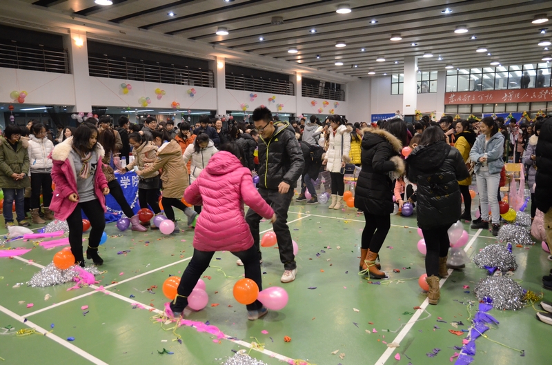 元旦晚會如火如荼地進行之時,文體館一樓也在熱鬧地舉行著中國傳統的猜燈謎和游園活動。燈謎活動是為了讓大家重溫古老的習俗,感受中國的文化底蘊。上百種燈謎的內容各色各樣,包括成語、漢字、古代人名等,滿足了同學們廣泛的興趣。在猜燈謎后,九個學院紛紛搭建了自己的慶祝小舞臺,“你比畫我猜”、“打保齡球”、“誰是臥底”等小游戲讓同學們都能參與其中,其樂融融。