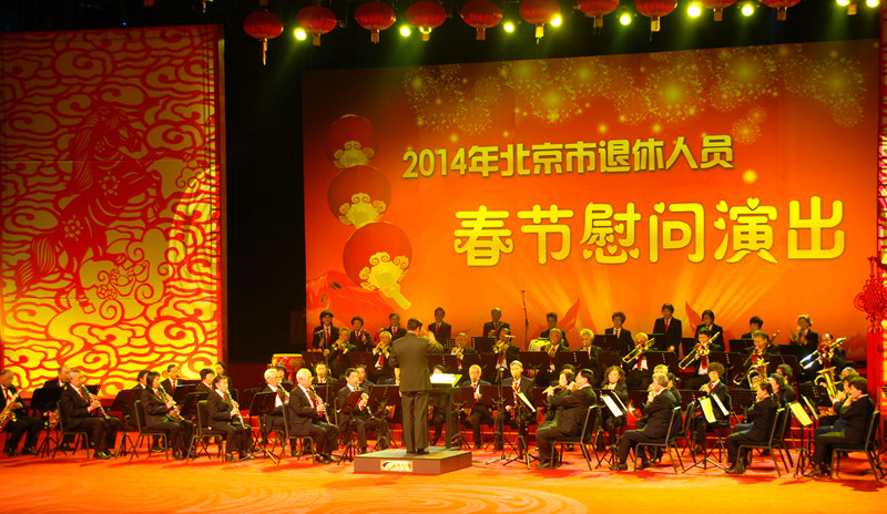 16日,2014年北京市退休人員春節慰問演出在保利劇院隆重舉行。我校離退休教職工金色陽光管樂團作為當天唯一的非專業隊伍進行了開場節目表演。他們演奏的《騎兵》和《喀秋莎》兩支曲目受到在場觀眾好評。