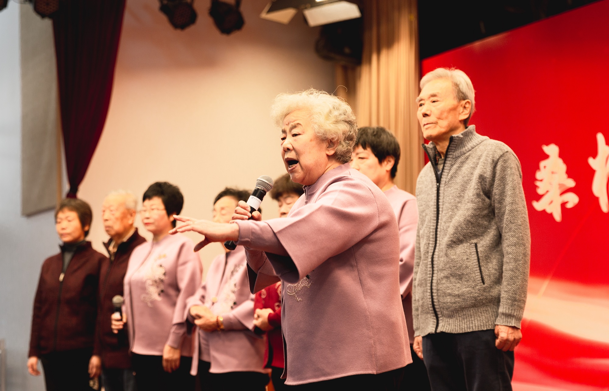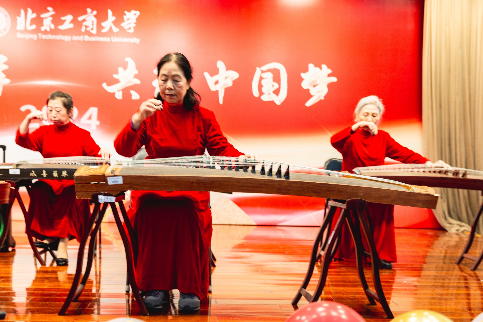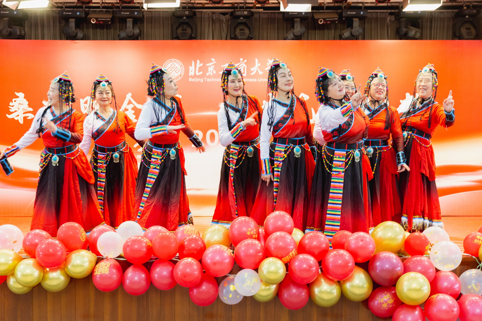 由學校退休教職工文藝團體表演的節目將團拜會帶入歡樂慶祝的熱烈氛圍。管樂合奏《我的祖國》《拉德斯基進行曲》展現了人民對祖國的熱愛和攜手并進新征程的雄心壯志;古箏合奏的《荷塘月色》、葫蘆絲合奏的《竹林深處》《婚誓》反映了人們對幸福生活的贊美和向往;大合唱《看山看水看中國》《春風十萬里》讓大家在歌聲中領略祖國大好河山,傳遞出對祖國的無盡的愛意;《難忘的那一天》《洗衣歌》兩支舞蹈展現了在祖國大家庭中,各族人民像石榴籽一樣緊緊抱在一起,不斷筑牢中華民族共同體意識;京劇名段聯唱、時裝表演《雨巷佳人》、健身項目表演《我愛你中國》展現了京劇、太極、民俗等中華優秀傳統文化的魅力,傳遞出老同志積極向上的生活態度;書畫社老同志現場潑墨揮毫,書寫傳統春聯為大家送上祝福。整場演出帶給老同志們歡快、關懷、自信的節日氛圍,讓老同志們更加有了歸屬感和幸福感。
