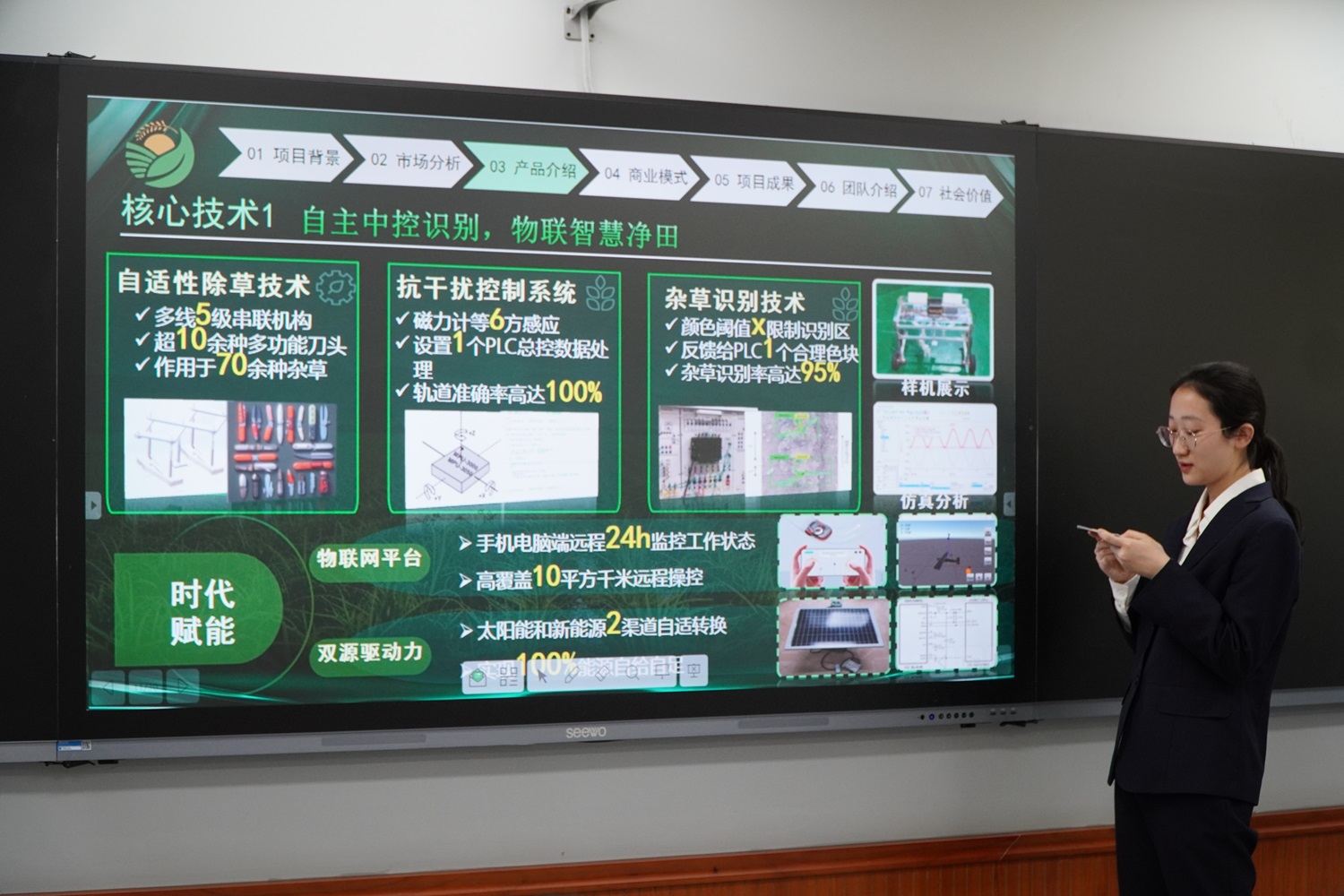 落實學校“工商一體化”發展理念,聚焦“雙一流”學科創建,構建重點項目孵化培育體系,推動“學科交叉、工商融合、產教融合、科教融匯”。依托重點科研項目,面向全校遴選“種子項目”,搭建“科研成果”轉化為“育人實效”的平臺,對標國創賽評審標準進行賽事轉化,為中國國際大學生創新大賽培優扶持重點項目。通過跨學科組隊,讓學生了解不同學科最新的科研成果,激發探索求知欲,培養科學家精神。在高教主賽道中,食品學科的“穩中求精——天然微脂體納米技術低碳高效穩態化姜黃素精準營養領航者”“細分人群導向的低 GI 健康食品創制”“‘植得吃’--中國特色新質蛋白肉生物重組加工技術及產品開發”等項目,充分展現了學校在食品健康領域的科研優勢與產業轉化潛力。在“青年紅色筑夢之旅”賽道中,“AI看見——視障人大模型智能眼鏡”項目聚焦特殊群體需求,深入開展社會調研,借助AI力量輔助視障人更加獨立自主生活。項目是我校長期堅持“以人為本”育人理念的生動縮影,展現了新時代學子將創新智慧服務社會、在公益實踐中增長才干的責任與擔當。
