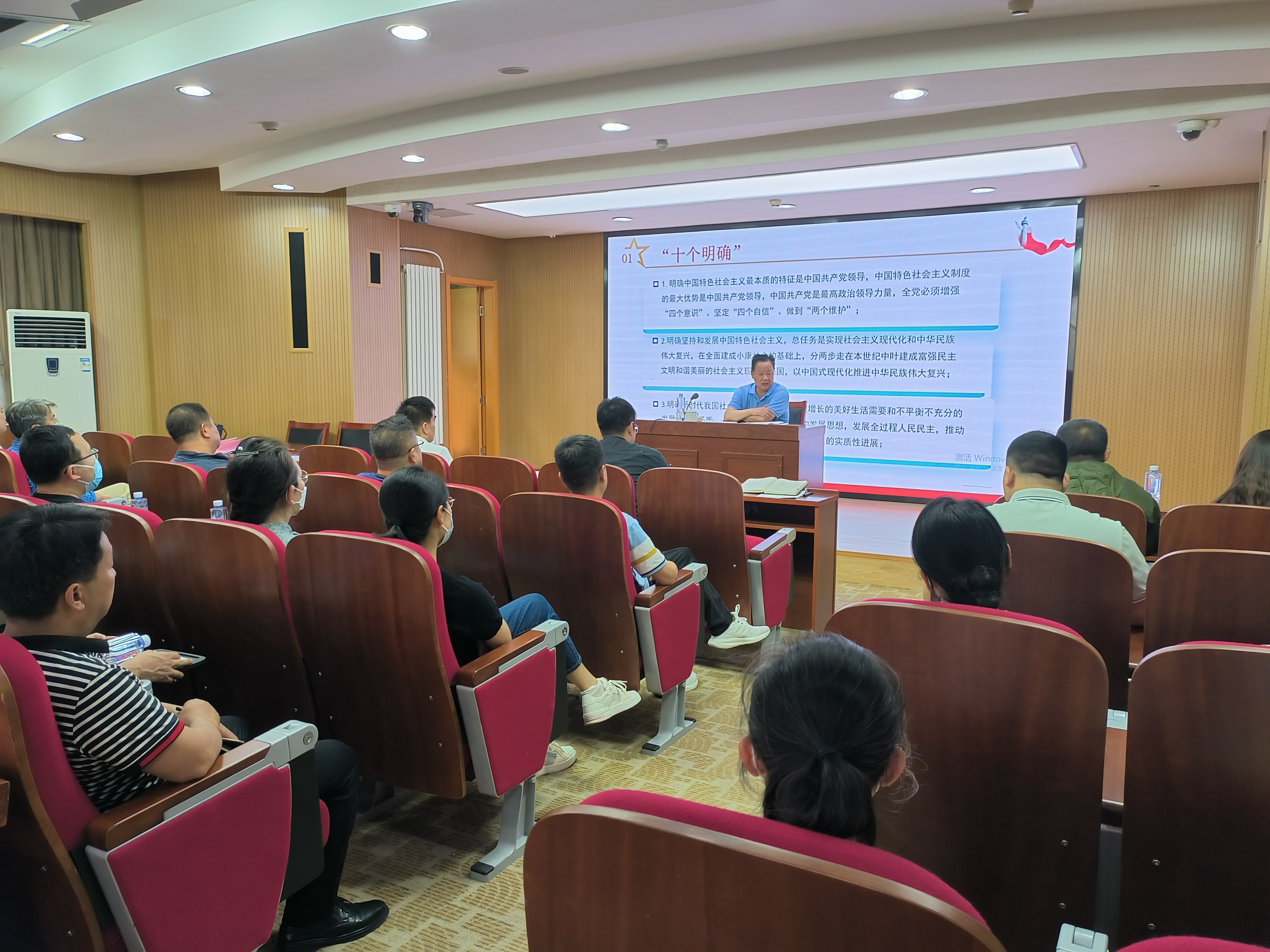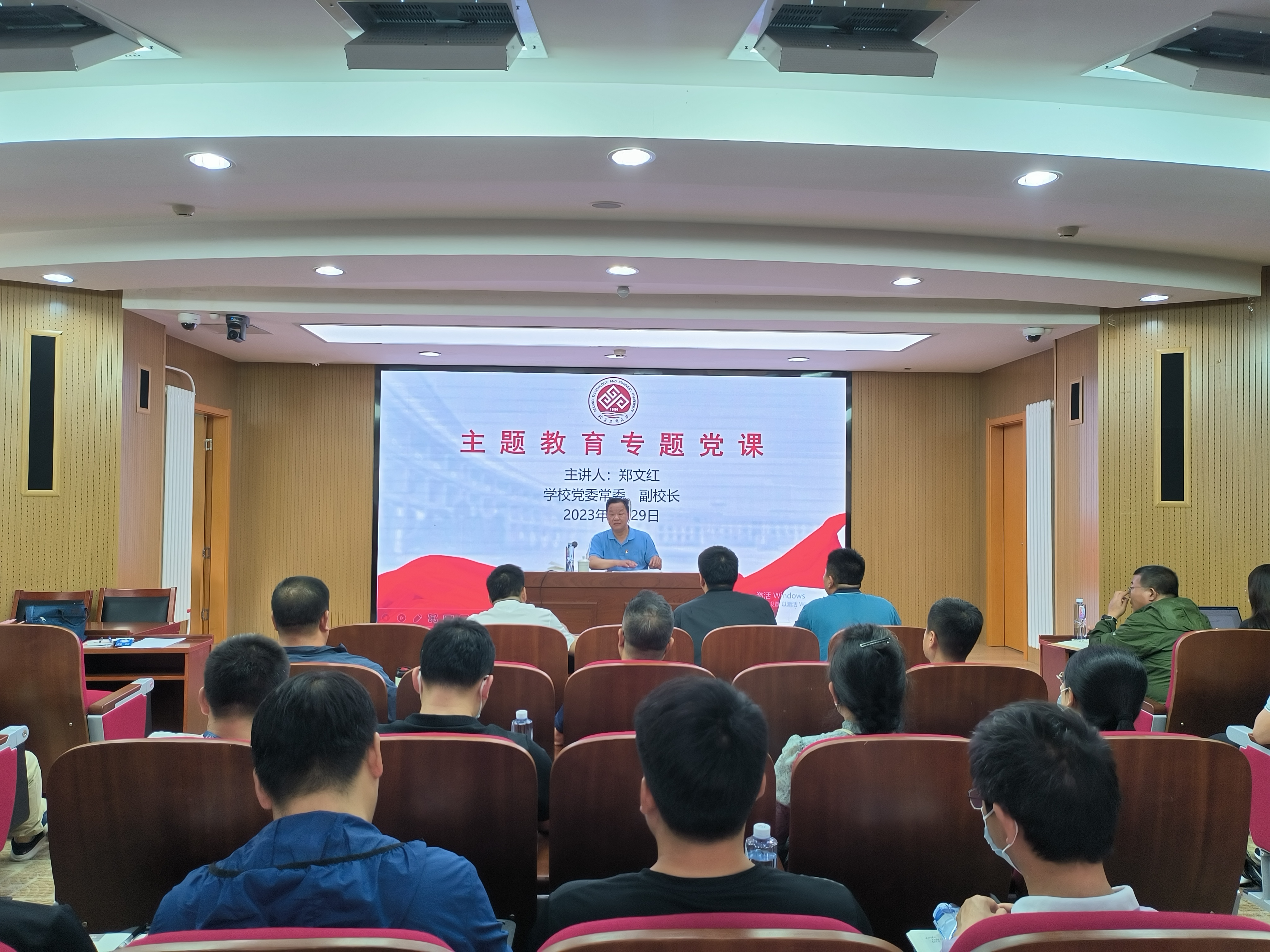 為深入開展學習貫徹習近平新時代中國特色社會主義思想主題教育,5月29日下午,學校黨委常委、副校長鄭文紅以《深入學習貫徹黨的二十大精神,奮力開創新時代學校公共事務工作》為題講授專題黨課。公共事務處黨員、發展對象、入黨積極分子及科室骨干力量等共計40余人聆聽黨課。
