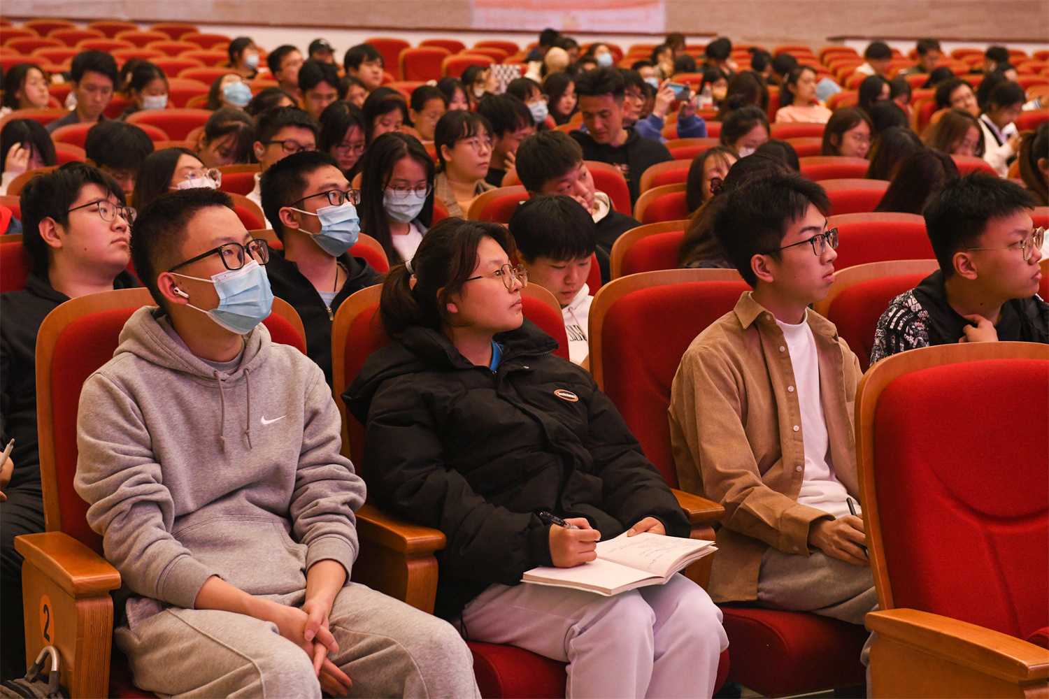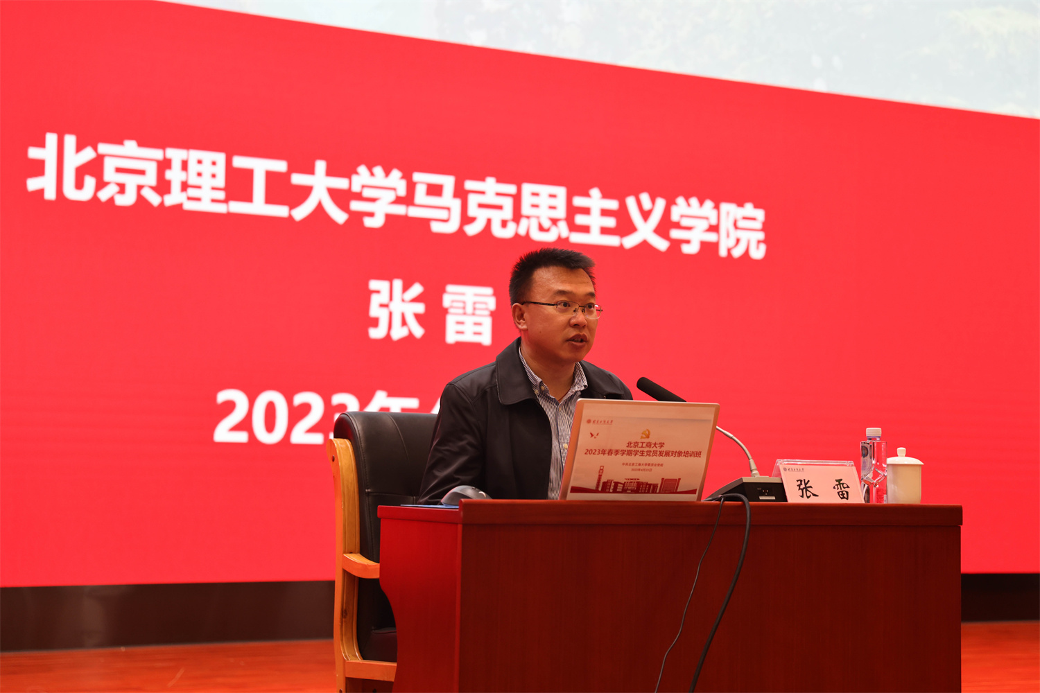 何猛以《學習習近平新時代中國特色社會主義思想,筑牢信仰之基》為題作第二場報告。她以習近平總書記在主題教育工作會議上的講話引入,強調了學好習近平新時代中國特色社會主義思想的重要性;并以生動詳實的歷史案例,闡釋了共產黨人堅不可摧的共產主義信仰。北京市社科聯“社科基層行”宣講團、北京市新時代文明實踐社科宣講團成員,北京理工大學馬克思主義學院副教授張雷帶來講座《在習近平新時代中國特色社會主義思想指引下——新時代 新征程 新偉業》,他詳細介紹了馬克思主義中國化的四個歷史階段,闡述了習近平新時代中國特色社會主義思想的形成和發展,為同學們讀原著、學原文、悟原理提供了方法和建議。