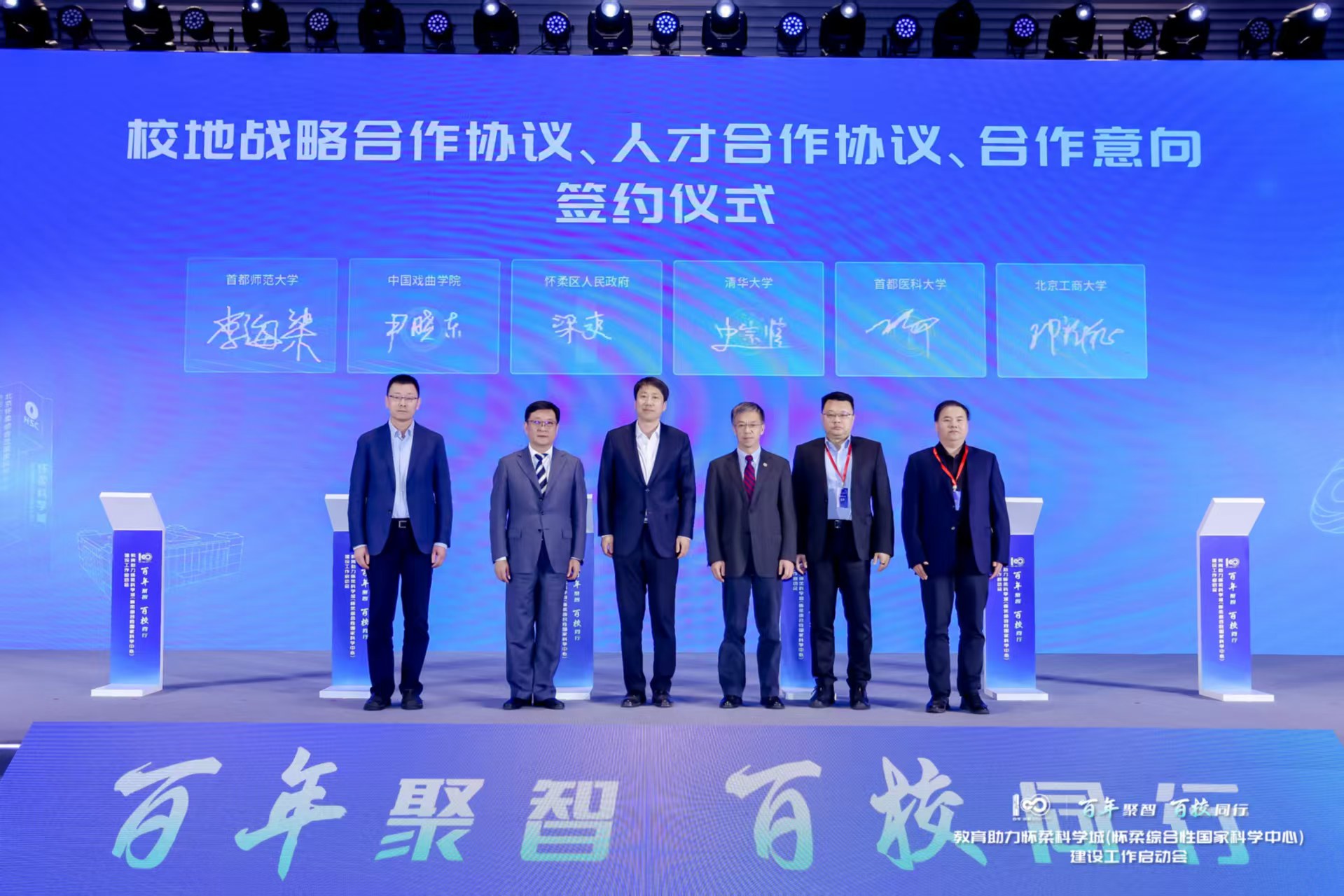 4月28日,“百年聚智 百校同行”教育助力懷柔科學城(懷柔綜合性國家科學中心)建設工作啟動會舉行。學校黨委常委、副校長鄧祥征出席活動并代表學校與懷柔區政府簽署校地戰略協議、人才合作協議。簽約儀式在懷柔區金隅興發科技園舉行,北京市委常委、教育工委書記于英杰,市政協副主席、懷柔區委書記、懷柔科學城黨工委書記郭延紅,市委教育工委分管日常工作的副書記李軍鋒,市委教育工委副書記、市教委主任李奕,懷柔區委副書記、區長、懷柔科學城黨工委副書記、科學城管委會主任梁爽等出席。