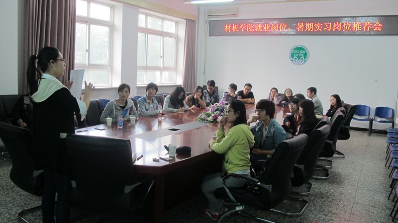 5月9日,材機學院在阜成路校區舉辦就業崗位、暑期實習崗位推薦會,邀請北京華夏鷹巢企業管理咨詢有限責任公司校企合作部經理那珊和13級研究生付曉宇為本科生、研究生推薦就業崗位和暑期實習崗位。學院黨總支副書記楊秀萍及輔導員參加會議。