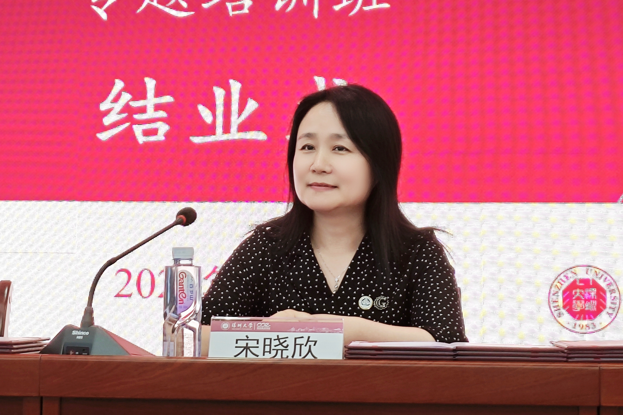 宋曉欣作總結(jié)講話。她代表學(xué)校和培訓(xùn)班全體向?yàn)槌晒εe辦這次培訓(xùn)付出辛勤努力的深圳大學(xué)及深大繼教學(xué)院的領(lǐng)導(dǎo)和老師們表示衷心的感謝。她談到,本次培訓(xùn)圓滿(mǎn)完成主要有以下三個(gè)特點(diǎn):一是培訓(xùn)地點(diǎn)好、辦學(xué)單位選得好。深圳是創(chuàng)新、改革的代名詞,深圳大學(xué)是深圳改革開(kāi)放的縮影。深圳大學(xué)以深圳速度、特區(qū)速度在學(xué)科、科研、內(nèi)部治理體系等方面取得的經(jīng)驗(yàn)值得學(xué)習(xí)和借鑒。二是課程安排好、老師講得好。培訓(xùn)師資優(yōu)質(zhì)、課程設(shè)置精致科學(xué),既有內(nèi)涵豐富、論述深刻的專(zhuān)題報(bào)告和理論講座,又有展現(xiàn)廣東改革開(kāi)放、深圳發(fā)展變遷和科技創(chuàng)新前沿等領(lǐng)域的現(xiàn)場(chǎng)講解、現(xiàn)場(chǎng)體驗(yàn)、現(xiàn)場(chǎng)教學(xué),還有兩校相關(guān)部門(mén)的調(diào)研交流和參訓(xùn)干部間學(xué)習(xí)心得體會(huì)的即興演講,前期準(zhǔn)備精心、過(guò)程隨時(shí)完善,專(zhuān)家授課精彩充實(shí)。三是干部狀態(tài)好、學(xué)習(xí)成效好。通過(guò)培訓(xùn),參訓(xùn)干部踐行了培訓(xùn)初心,激發(fā)了學(xué)習(xí)主動(dòng)性,加強(qiáng)了彼此學(xué)習(xí)交流,收獲了立足崗位推動(dòng)發(fā)展的能量,更是從兩校發(fā)展差距中找到了今后的努力方向,堅(jiān)定了建設(shè)高水平研究型大學(xué)的信心。