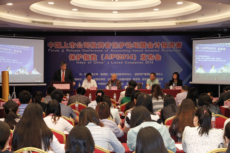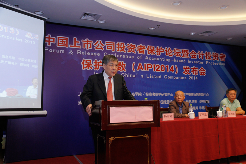 繼過去連續四年發布上市公司投資者保護指數后,9月26日,我校召開中國上市公司投資者保護論壇暨會計投資者保護指數(AIPI2014)發布會,第五次發布該指數。商務部原副部長、中國商業聯合會會長張志剛,中國注冊會計師協會原秘書長丁平準,我校副校長謝志華出席發布會并作主題演講。《證券日報》等在京媒體、《審計研究》等專業期刊、上市公司及投資機構代表,在京高校和科研機構代表以及商學院部分教師和學生100余人參加發布會。發布會由科技處處長楊有紅主持,商學院黨總支書記歐陽愛平到會致辭。