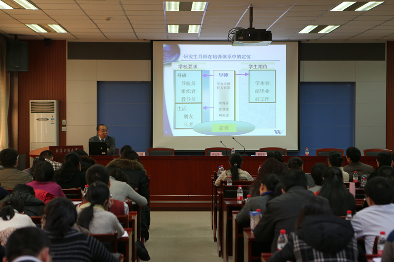為進(jìn)一步加強(qiáng)碩士研究生導(dǎo)師隊(duì)伍建設(shè),提升新增研究生導(dǎo)師指導(dǎo)研究生的水平和能力,提高我校研究生培養(yǎng)質(zhì)量,12月11日,學(xué)校在阜成路校區(qū)召開2014年新增導(dǎo)師培訓(xùn)工作會,孫寶國校長和謝志華副校長出席活動,各學(xué)院主管院長和近2年來新增研究生導(dǎo)師參加了會議,會議由研究生部主任楊德勇主持。