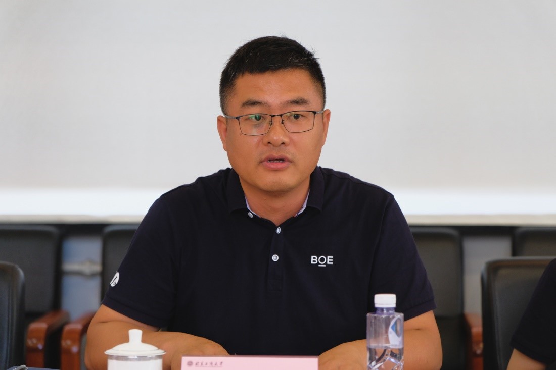 李慧軍感謝學校的熱情接待及對本次參觀考察的精心安排。他對京東方的發展歷史、發展方向、企業文化等方面進行介紹。他表示京東方肩負“自主創新、產業報國”的歷史責任和使命,扎根產業謀發展,堅持“屏之物聯”的發展戰略,推動企業平臺化、數字化、智能化快速轉型。他談到,作為校友眾多的一家物聯網創新企業,對北京工商大學的快速發展十分關切,希望以本次交流走訪為契機,全面加深雙方戰略合作關系,推動雙方合作關系邁向更高水平。