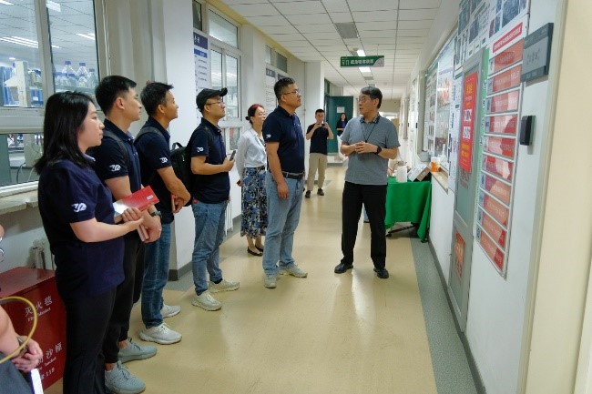李慧軍先后走訪中國輕工業釀酒分子工程重點實驗室、蛋白資源開發與營養食品研究實驗室、化妝品監管科學研究基地、數字未來中心、智慧教室和圖書館,就學校智慧教學、特色學科建設、科研成果轉化和產學研融合等方面進行深度考察調研。