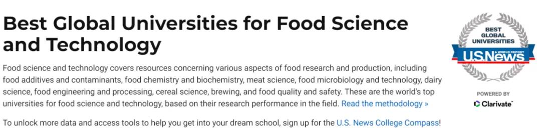 10月26日,US News發(fā)布2022世界大學(xué)排行榜,涉及85個(gè)國(guó)家,超過(guò)40個(gè)學(xué)術(shù)專業(yè)領(lǐng)域。其中,在食品科學(xué)與技術(shù)領(lǐng)域,全球共有200所大學(xué)入榜單,中國(guó)大陸共有36所大學(xué)入榜單。我校食品科學(xué)與技術(shù)學(xué)科位列全球第24位。
