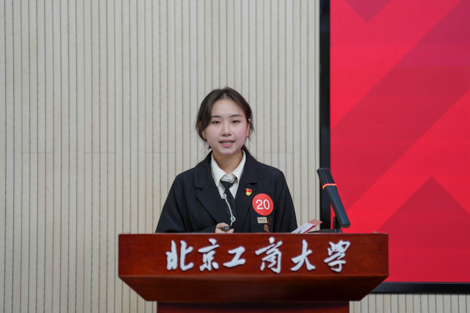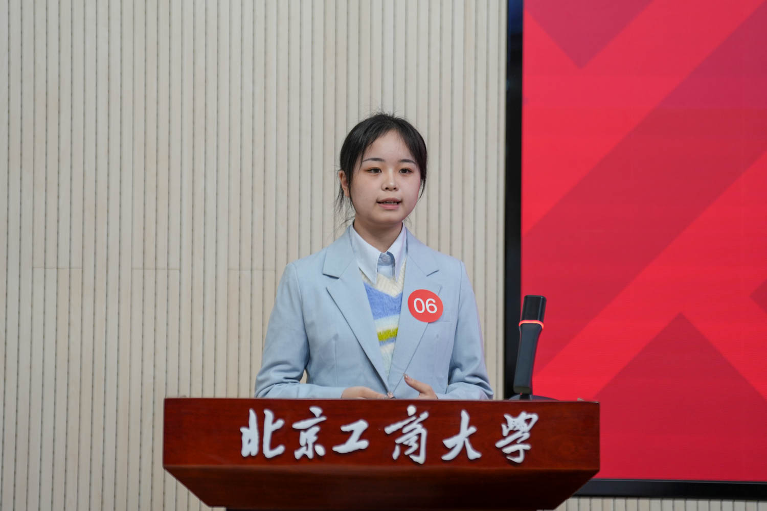 來自9個學院的20名“校長獎學金”候選人按照德育發展、學業發展、學術創新、體育與美育、勞動教育五個類別以及每類抽簽順序依次上臺,通過200秒演示匯報,現場展示了自己在德、智、體、美、勞等方面取得的優異成績。匯報結束后,專家評委、教師評委和學生評委根據每名候選人的匯報展示進行評分。