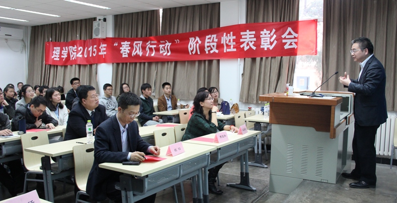 4月8日,為總結“春風行動”經驗、典型做法,對活動階段性成果進行表彰,學院召開2015年“春風行動”學風建設階段性表彰會。院長曹顯兵、黨總支書記祝鈞、副院長李寶河及輔導員、班主任代表出席會議,黨總支副書記王嘉彥主持會議。