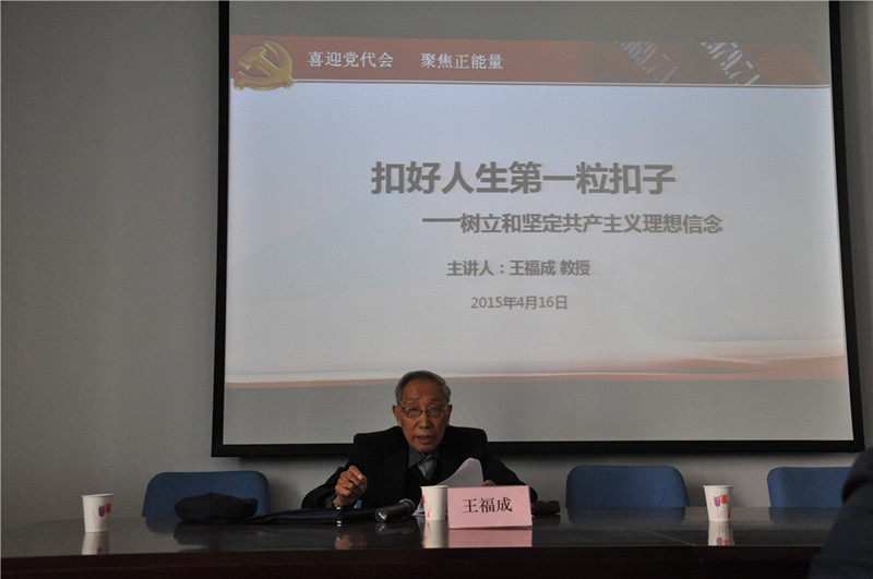 為迎接學校第二次黨代會召開,進一步加強學生黨員理論學習,4月16日,計信學院邀請原北京商學院副院長、北京工商大學第一、二次黨代會代表王福成教授為研究生黨員授課。離退休工作處副處長王紅英、計信學院院長蔡強、黨總支副書記張凱偉及研究生黨員、入黨積極分子參加了學習。