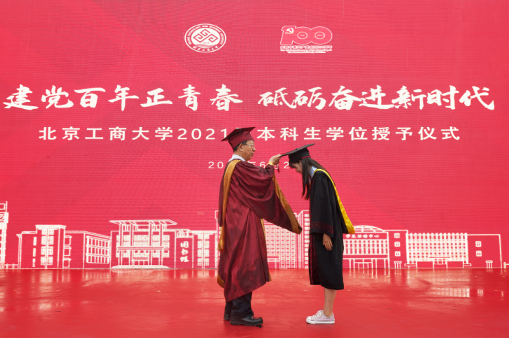 孫寶國指出,2021屆畢業生是不平凡的一屆,經歷了新冠疫情和學業的雙重考驗,積累了難得的人生閱歷,更加堅韌,更有擔當,他以北工商校訓勉勵即將奔赴遠大前程的畢業生們:以求真為先,秉承放眼世界的開放胸懷。要擁有夢想并為之付出實實在在的努力。以立德為本,堅守報效祖國的赤子情懷。切實投身到建設國家的宏偉事業中,把自己的成長融入到國家發展、社會進步的洪流中,讓愛國主義在心中扎根,在行動上體現。以勤奮為重,筑牢開拓進取的根基。平庸與卓越之間的差別,不在于天賦,而在于長期的堅持、持續的投入。要有持之以恒的堅持,持續不斷的努力,才能把握機會,實現目標。以創新為要,抓住勇立潮頭的先機。在科學技術和經濟社會發展加速滲透融合的今天,要思考走出大學校園后應當承擔的責任和使命,為打贏關鍵核心技術攻堅戰貢獻力量。
