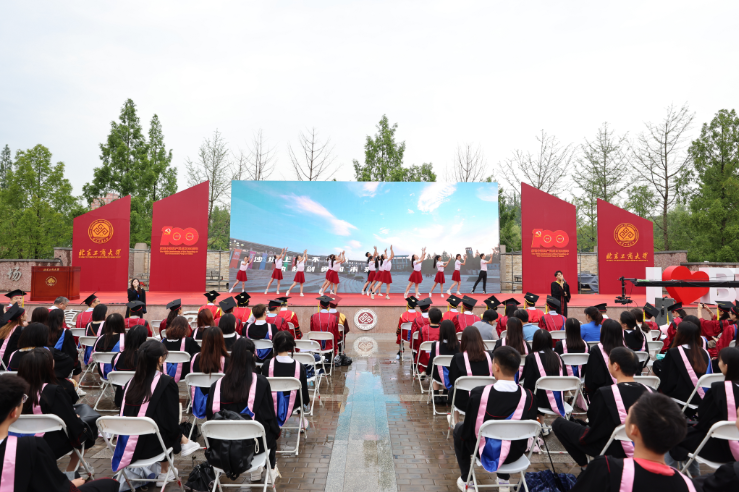 在開場演出《北工商版星辰大海》后,師生一同觀看了開場視頻。視頻中畢業生們深情講述,定格四年中最美好、最難忘的青春記憶,送上學校、學院領導老師的臨別祝福。“北工商,我愛你!”視頻的最后,畢業生們大聲說出對母校的祝福,相約未來,在更高的頂點相見!