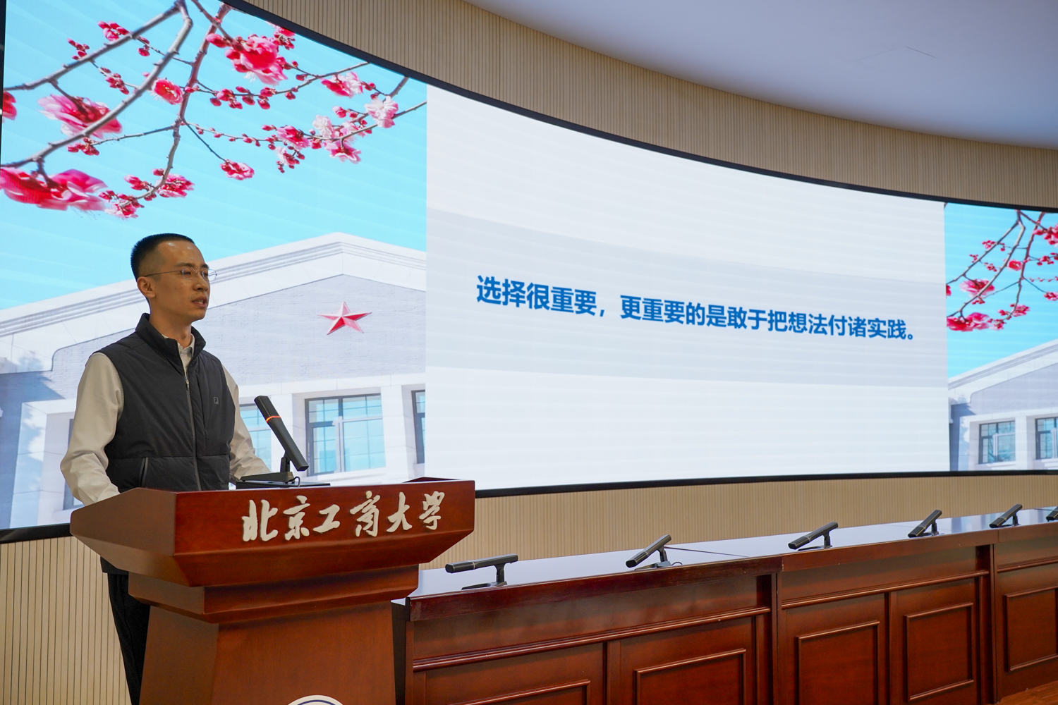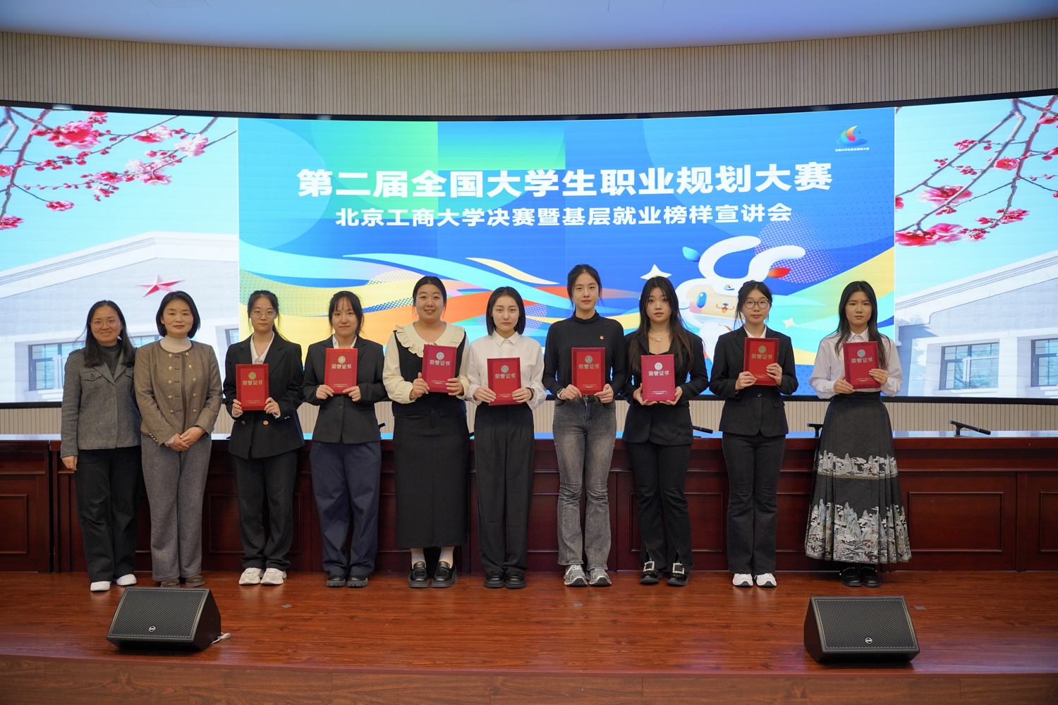 12月25日,第二屆全國大學(xué)生職業(yè)生涯規(guī)劃大賽北京工商大學(xué)決賽暨基層就業(yè) 榜樣宣講會在良鄉(xiāng)校區(qū)舉辦。黨委常委、副校長徐丹丹出席并致辭。招生就業(yè)處處長石松,學(xué)生處處長鄭光,團委書記單紫薇,教務(wù)處副處長、創(chuàng)新創(chuàng)業(yè)學(xué)院院長蓋曉慶,招生就業(yè)處副處長劉晶以及各學(xué)院分管就業(yè)工作的副書記、師生代表參加了此次活動。教育部高校學(xué)生司就業(yè)服務(wù)處周紫陽、大興區(qū)人力資源和社會保障局辦公室主任楊晨應(yīng)邀出席。大賽特邀中國人民大學(xué)、北京外國語大學(xué)、北京中醫(yī)藥大學(xué)就業(yè)負責(zé)人及企業(yè)代表擔(dān)任評委。大賽由招生就業(yè)處孫碩主持。