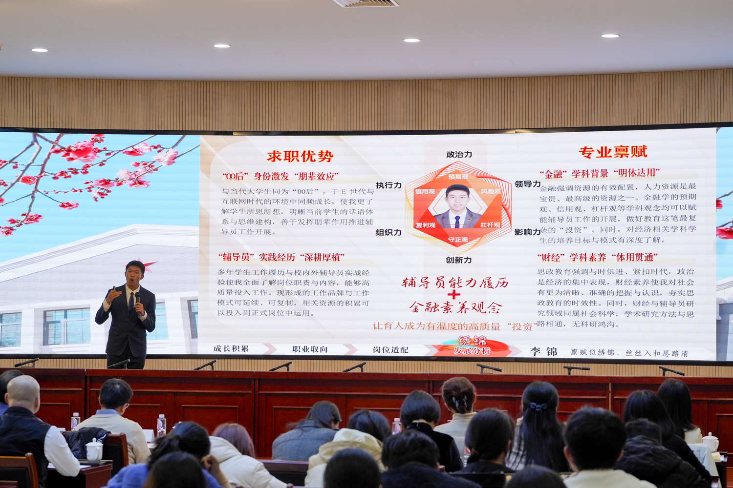 此次大賽同時也是我校第五屆職業(yè)規(guī)劃大賽、第三屆求職大賽。現(xiàn)場比賽精彩紛呈,選手們用青春的力量描繪夢想的未來,有的希望成為秉持正義之劍的律師,有的希望成為記錄真相的記者,有的希望成為發(fā)光發(fā)熱的輔導(dǎo)員,還有的心懷田園情、科技夢,希望成為一名新農(nóng)人,他們不僅僅規(guī)劃著自己未來的職業(yè)方向,也滿懷著對國家,對社會、對時代的思考和情懷。