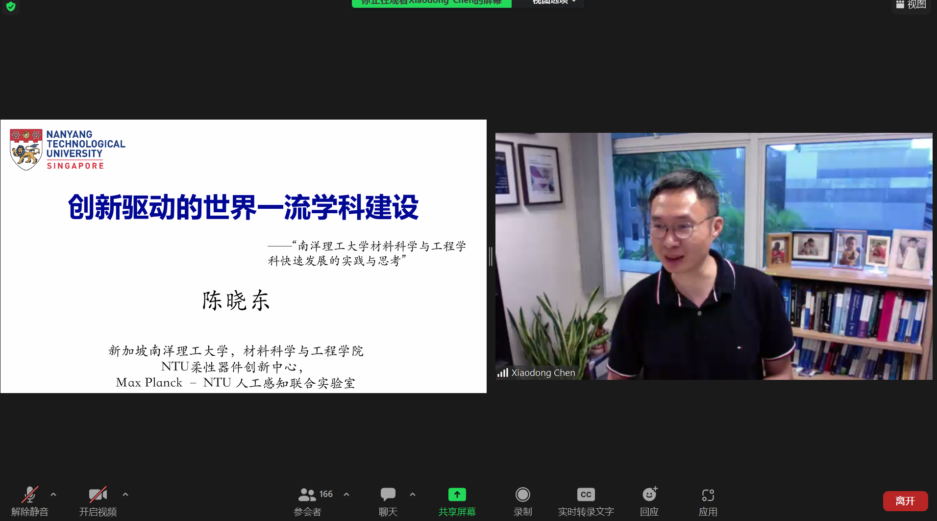 5月25日,學(xué)校開(kāi)展2022年干部治理能力提升系列培訓(xùn)(新加坡南洋理工大學(xué)專場(chǎng))。邀請(qǐng)到新加坡工程院院士、南洋理工大學(xué)柔性器件創(chuàng)新中心主任、人工感知聯(lián)合實(shí)驗(yàn)室主任陳曉東教授分享一流學(xué)科建設(shè)經(jīng)驗(yàn)。校領(lǐng)導(dǎo)、全體中層干部參會(huì)。會(huì)議由黨委常委、副校長(zhǎng)劉敏華主持。