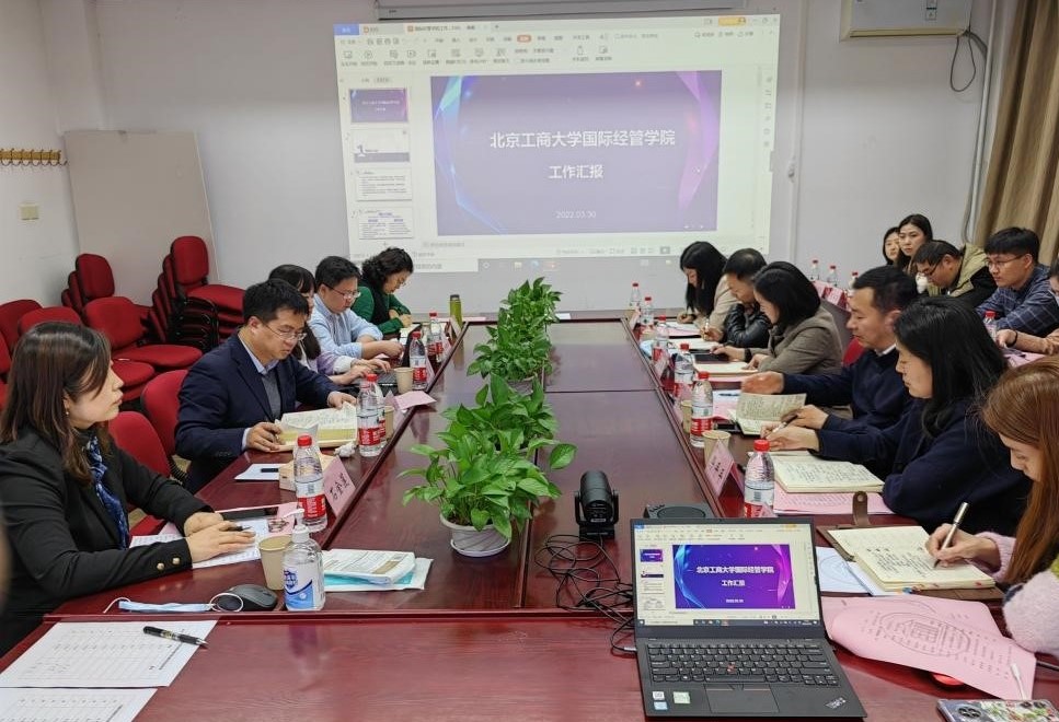 在國際經管學院,郭毅詳細介紹了學院建設思路、愿景目標、學科專業、科研工作、人才培養、學生工作、師資隊伍建設、國際交流合作和社會服務等方面內容,重點匯報了學院教師隊伍構成和開展國際交流合作情況。班子成員就分管工作發言,與會教師逐一就學院發展、學科和專業建設、人才培養等方面提出意見與建議。賀冬萌表示未來將從人才培養、國際科研項目合作和中外合作辦學三個方面助力學院國際交流與發展。畢平平對學院進一步加強師資建設工作提出建議,表示未來將從師資及管理隊伍的配備、柔性人才引進辦法及宣傳工作三個方面為學院又好又快發展提供支持。