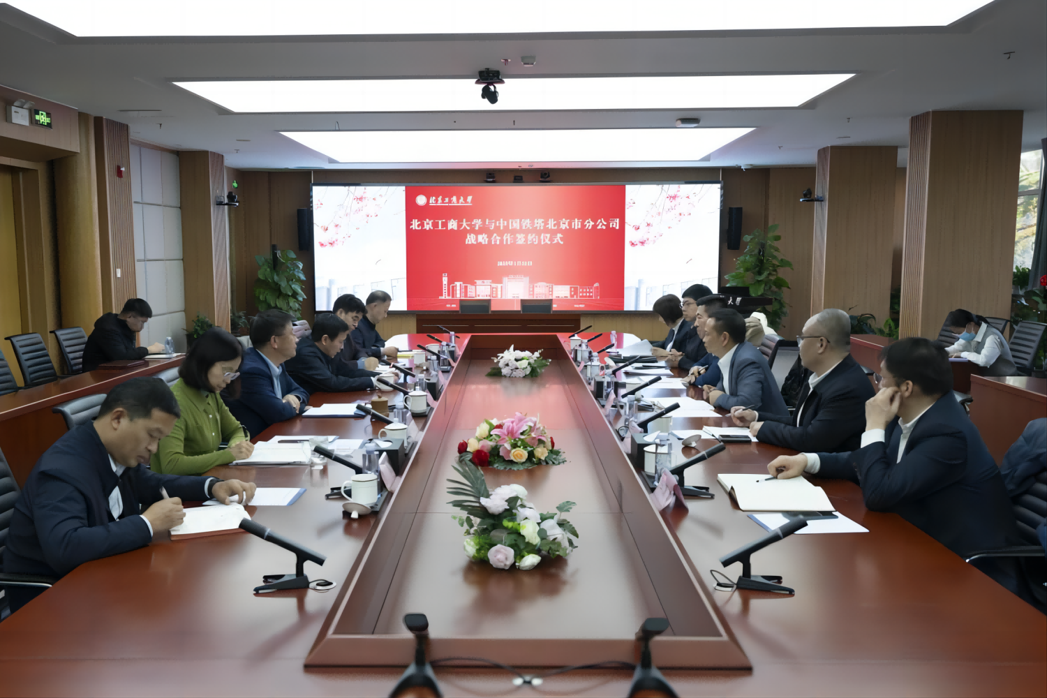 1月21日,北京工商大學(xué)-中國鐵塔股份有限公司北京市分公司戰(zhàn)略合作簽約儀式在阜成路校區(qū)舉行。中國鐵塔北京市分公司黨委書記、總經(jīng)理耿時敏,黨委委員、副總經(jīng)理程繼偉;校黨委副書記、校長郭建華,黨委常委、副校長寇紅江出席儀式。儀式由寇紅江主持。