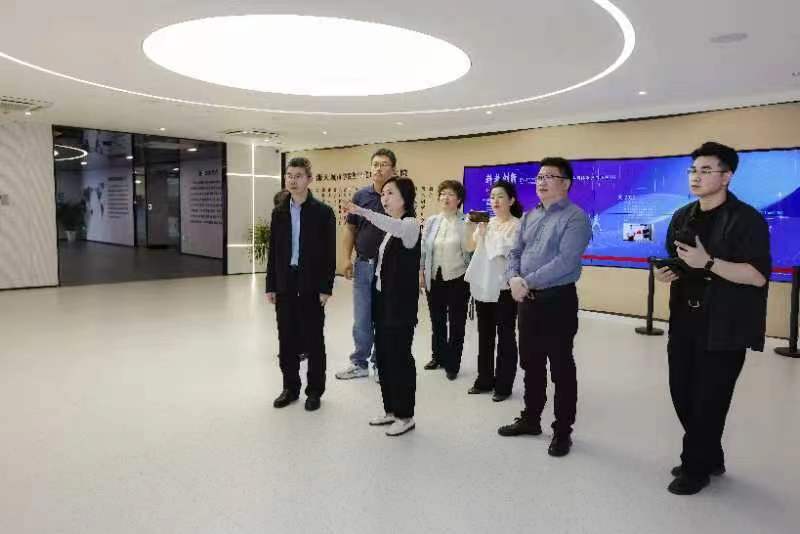 毛新述一行首先調研了蘇州灣數字藝術館。這是一座集數字藝術展覽、科技創新、文化交流于一體的現代化文化科技館。整座館總建筑面積約14000平方米,展廳面積約5000平方米,包括2個常設展廳、2個特展廳,并配有公教中心、多功能廳等多業態空間,兼具科技、教育、文化、藝術、娛樂,是視覺、聽覺、觸覺的沉浸式體驗。在參觀體驗《靈境——未來靈感世界》《靈眸——瞳趣視界》等展覽的過程中,毛新述與建設方交流了如何規劃設計、實現全場景數字化,做到“科技領先、內容豐富、體驗極佳、功能多元”,同時圍繞數字科技與文化融合創新成果展示、以極具創意和交互性的呈現形式創新打造虛實融合的數字空間和數字商科人才培養等進行了深入溝通。