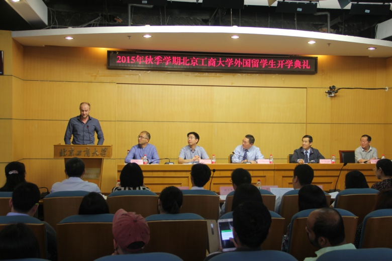 916日,2015年秋季學期外國留學生開學典禮在阜成路校區舉行。李朝鮮副校長出席典禮并講話。國際合作院校代表、我校相關職能部門負責人、學院代表、教師代表,與來自27個國家的802015級秋季學期全體外國留學生新生一起參加了開學典禮。