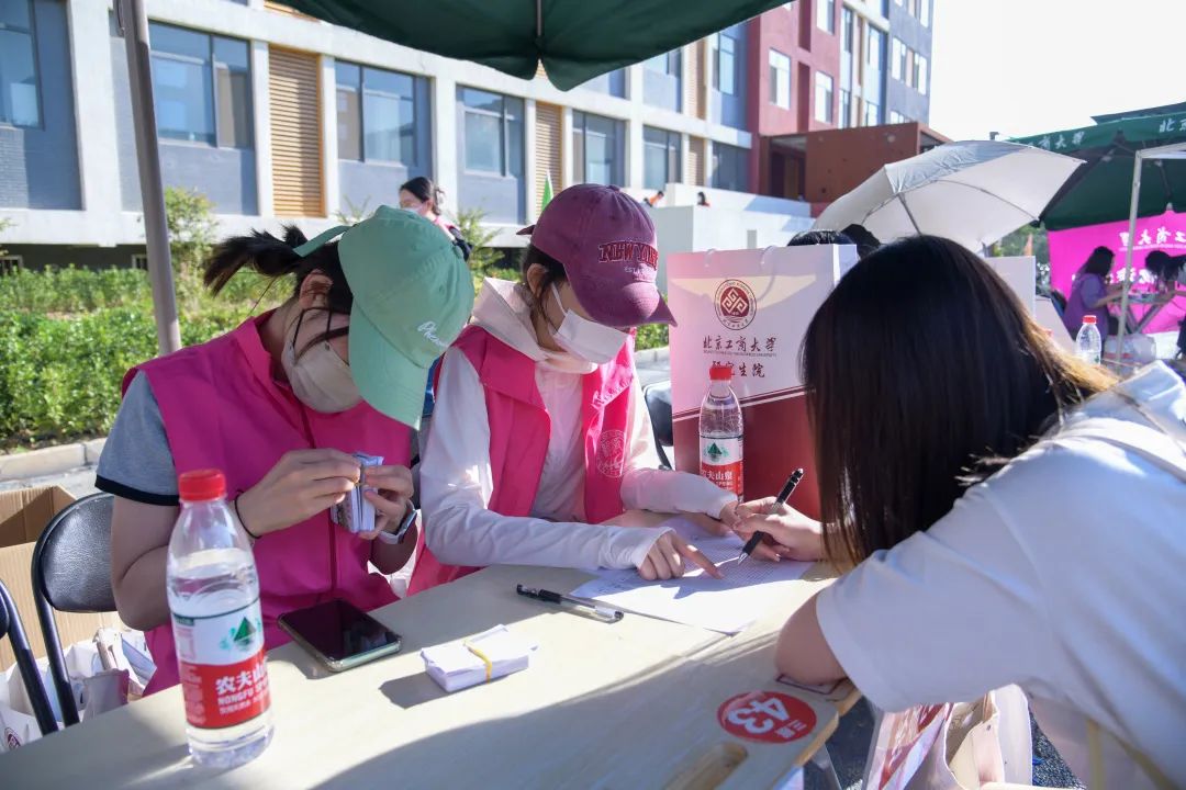 商學(xué)院為新生編寫校園防疫順口溜,引導(dǎo)新生遵守防疫政策,做好個(gè)人防護(hù),同時(shí)策劃組織“打卡集章”活動(dòng),新生與北工商大門、食堂及教室的合影,即可至報(bào)到點(diǎn)獲得刻有校訓(xùn)、校徽及院徽的印章共創(chuàng)入學(xué)美好回憶。