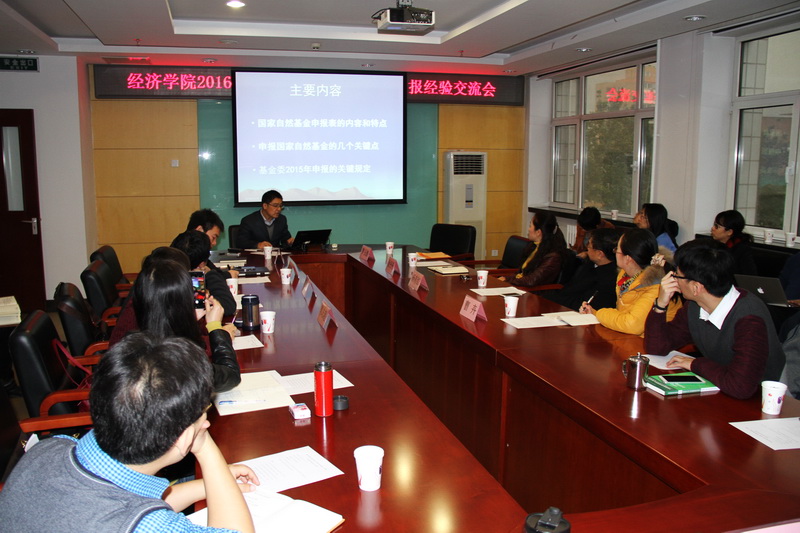 楊有紅處長介紹了國家“兩科”基金申報政策、申報成功率和申報注意事項。他對經濟學院近幾年國家“兩科”基金申報和批復情況充分認可,希望經濟學院通過開展國家“兩科”基金申報經驗交流會、評審會等細致的工作,實現2016年度國家“兩科”基金獲批數量新的突破。