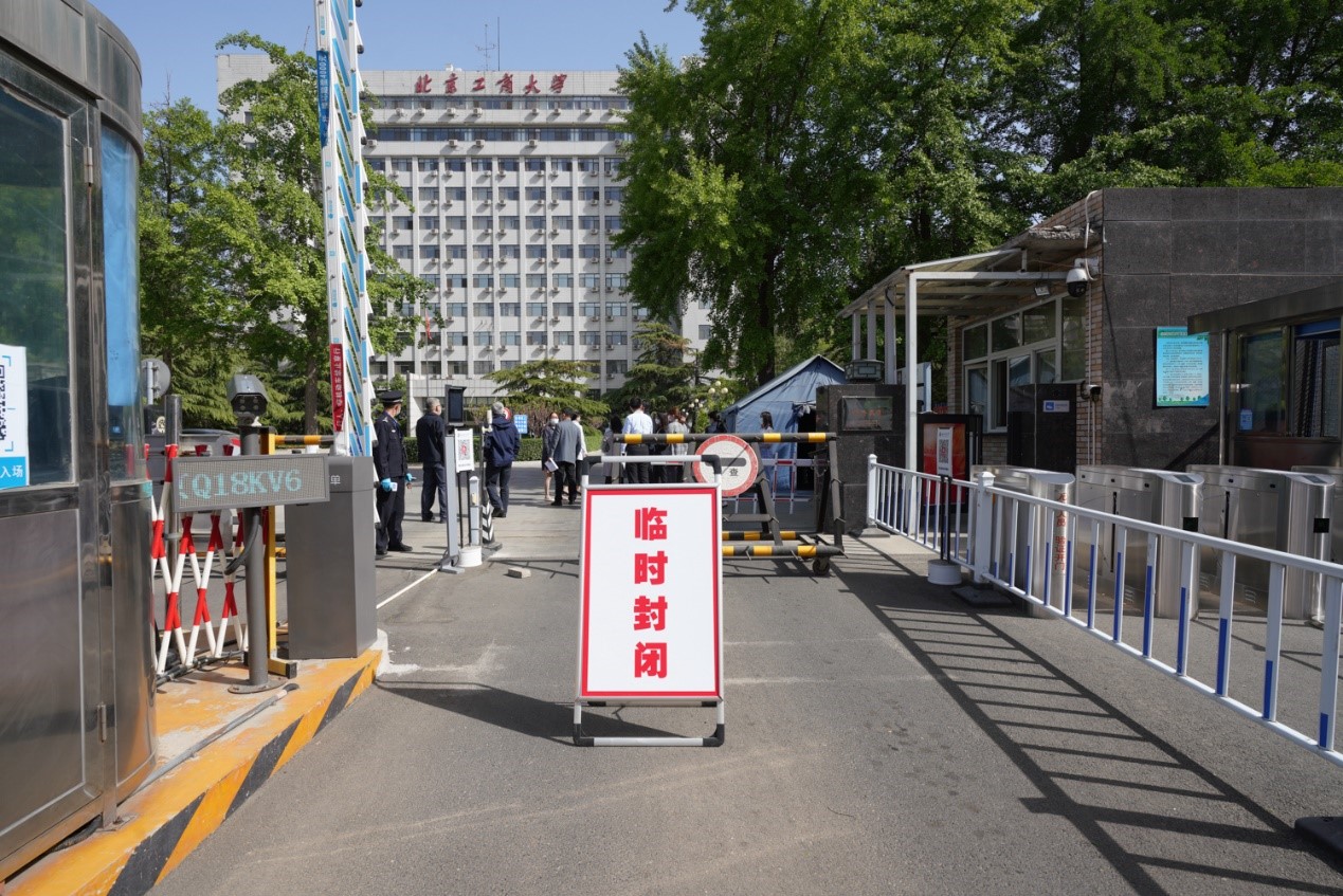 接到防控辦電話后,保衛處第一時間響應,根據臨時封閉校園指令,關閉所有校門,在門口擺放臨時封閉告示牌,拉起警戒線,放置拒錐,開辟防疫專用通道;公共事務處立即對“確診”學生所在教學樓和宿舍樓人員進行管控,關閉樓宇全部出入口,通知所有人員原地靜候流調;校醫院醫護人員指導陽性病例轉運至臨時處置點、密接人員轉運至隔離點……應急處置工作爭分奪秒全面展開。