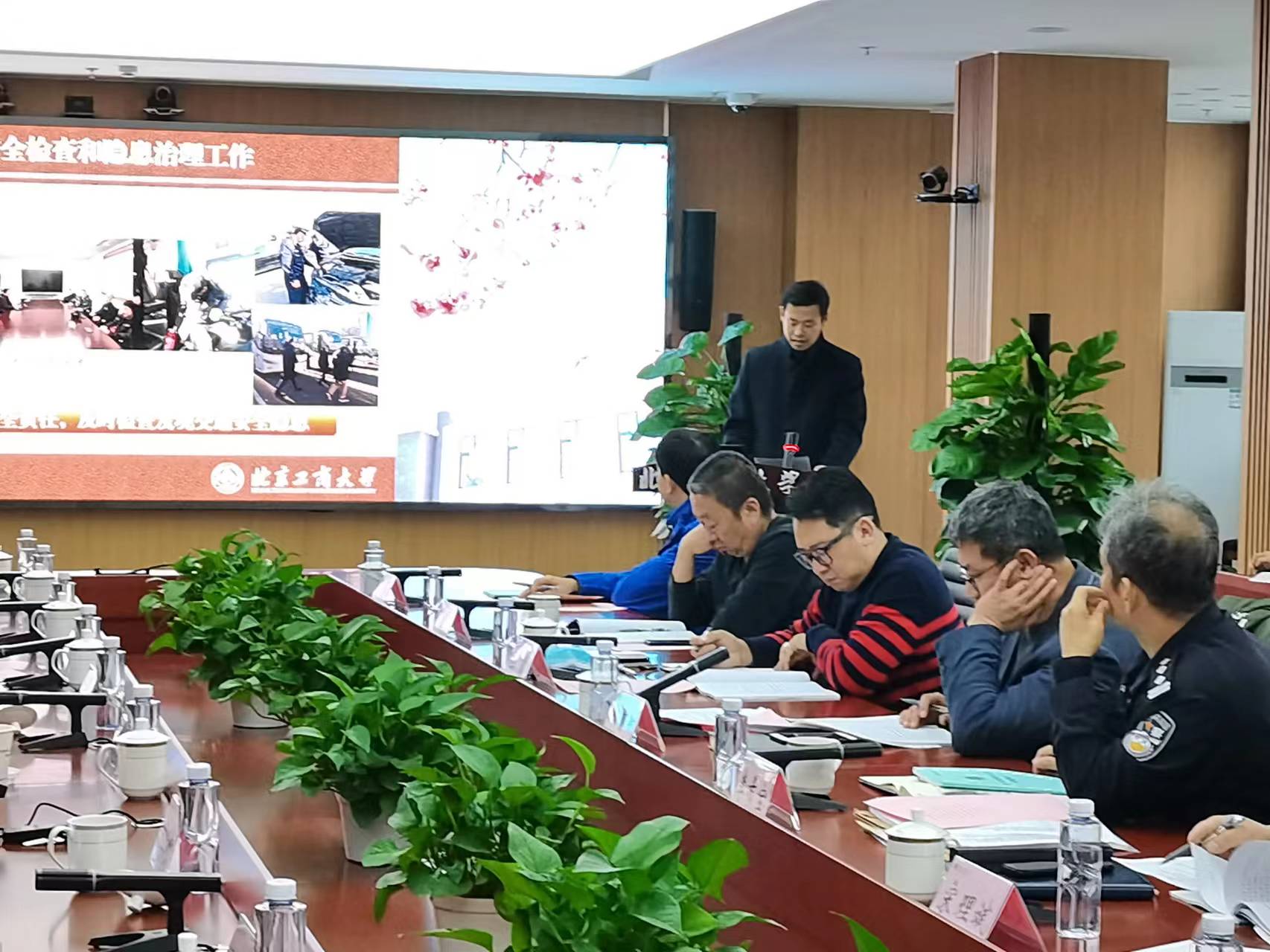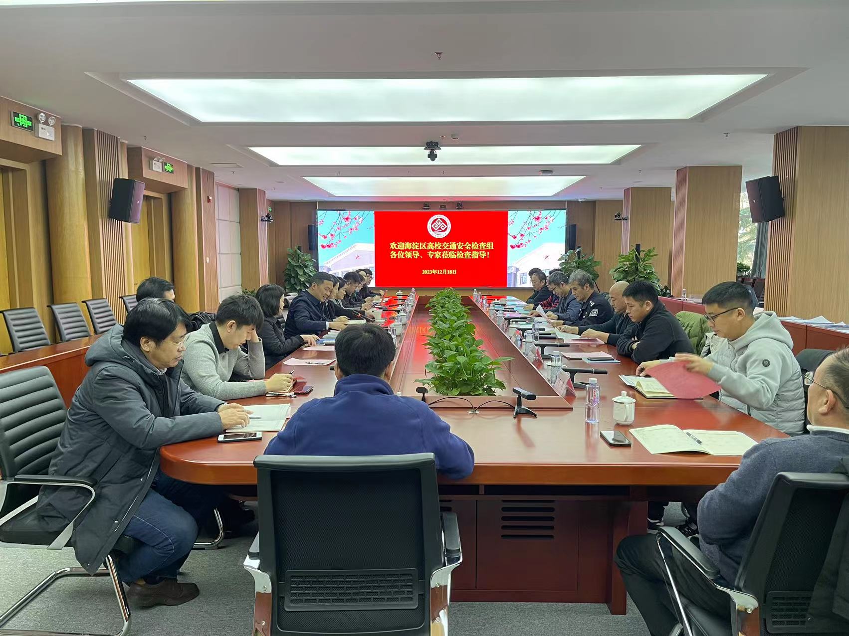 12月18日,由海淀高校交通安聯(lián)辦李希寶主任帶隊,中央財經(jīng)大學(xué)、中央民族大學(xué)、清華大學(xué)、人民大學(xué)安全保衛(wèi)工作專家一行8人來我校阜成路校區(qū)檢查學(xué)校2023年交通工作情況。保衛(wèi)處處長孫磊、研究生工作部部長郭新愿、國際交流合作處處長賀冬萌、保衛(wèi)處副處長許峰、黨委宣傳部副部長王遠(yuǎn)芳、校園建設(shè)處副處長李凱歌、離退休工作處副處長夏本翠及黨政辦公室、人事處、學(xué)生處、團委相關(guān)教師參加迎檢工作。