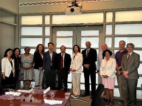 在芝加哥訪問期間,黃先開一行先后訪問了美國伊利諾伊大學芝加哥分校和美國多米尼加大學。在伊利諾伊大學芝加哥分校訪問期間,代表團一行與該校國際部舉行項目會談,雙方回顧了2022年雙方建立校級合作關系以來所開展的交流交往以及合作成果,并就下一階段雙方在碩博層次人才培養、高層次師資交流、科研項目合作以及商科數字化教育平臺建設等內容交換了意見,并達成了初步合作意向。隨后,代表團成員在國際部項目主任Jeff Wang的陪同下參觀了校園的相關教學設施。