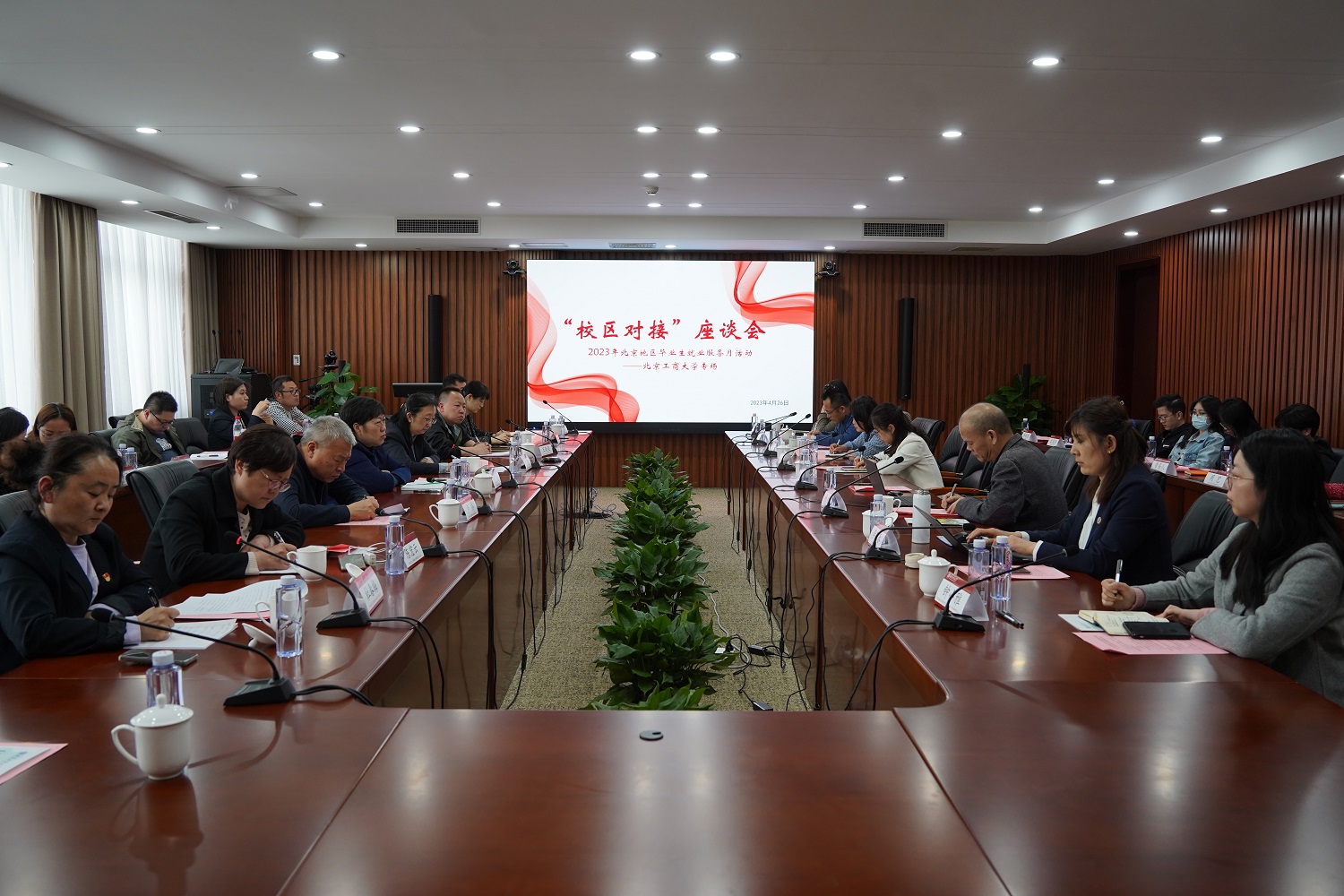 “校區對接”工作座談會在良鄉主校區舉辦。會上,鄭文紅介紹了學校的發展歷史與辦學特色等基本情況,并對市人力社保系統和市就業促進中心的支持和幫助表示感謝。丁玎表示人社局將與學校同向同行,將政策、崗位、信息、指導、培訓送進校園,多樣化服務形式,與學校形成合力助力畢業生早就業、就好業。