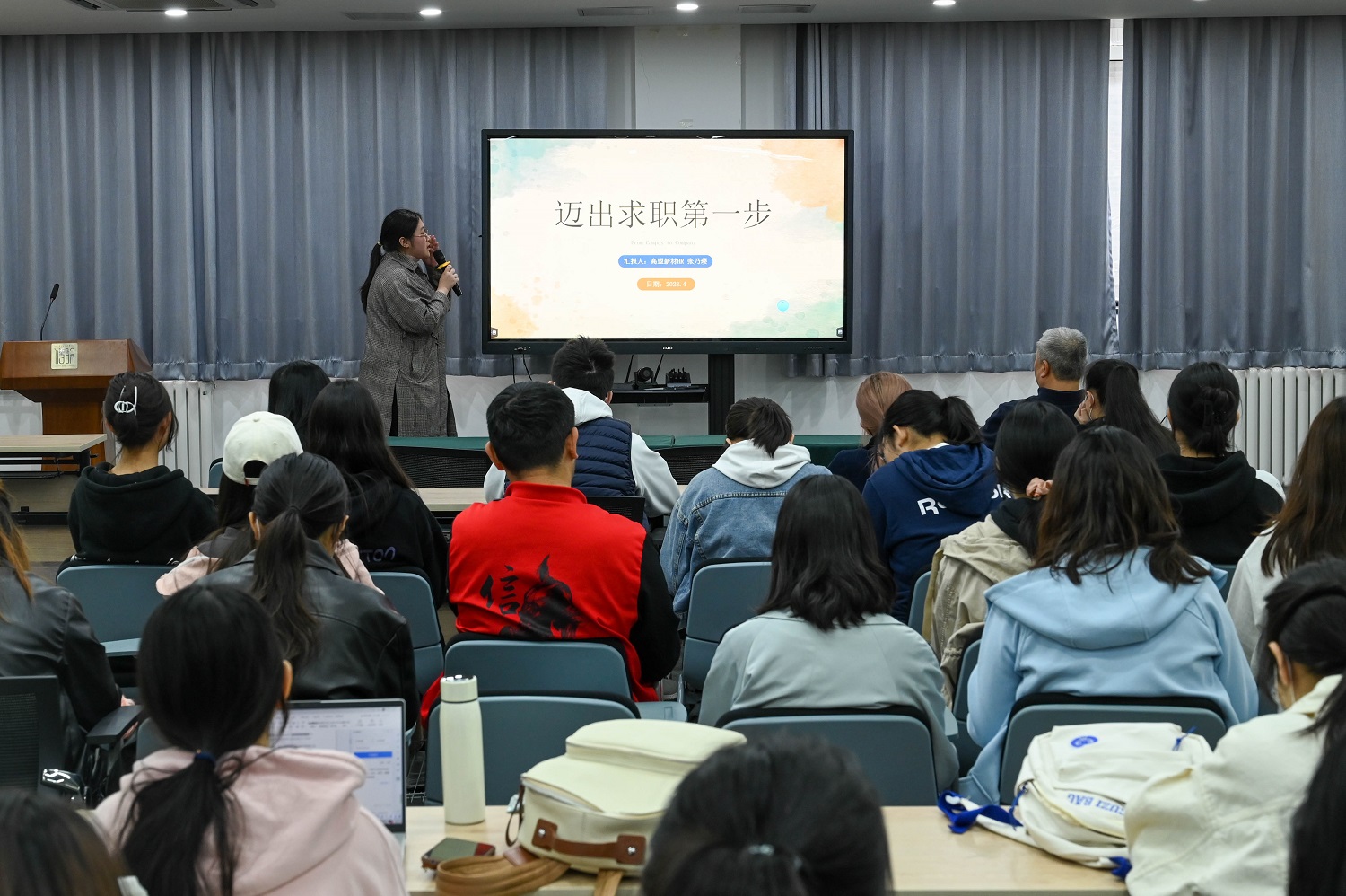 “人社局長進校園”活動在良鄉主校區舉辦。房山區人力資源與社會保障局副局長盧祥以《志存高遠,厚積薄發;綻放理想,成就未來》為題開展了政策宣講。北京高盟新材料股份有限公司人力資源主管張乃瓔以《如何邁出求職第一步》為題進行了就業指導主題分享。