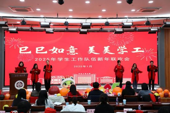 聯(lián)歡會(huì)上,全體學(xué)工人各展才藝,通過(guò)舞蹈、合唱、脫口秀、朗誦等演出歡聚一堂、共迎新春,大家在歡聲笑語(yǔ)中,攜手共同迎接嶄新的一年。展望未來(lái),我們滿懷信心與決心,堅(jiān)信在全體學(xué)工人的不懈努力和共同奮斗下,學(xué)校大學(xué)生思想政治教育工作將再上新臺(tái)階,為學(xué)校“雙一流”學(xué)科創(chuàng)建和“工商一體化”高水平研究型大學(xué)建設(shè)貢獻(xiàn)學(xué)工人的熱情與力量!