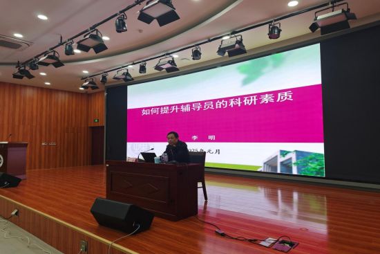湖南理工學(xué)院原黨委書(shū)記、教授李明作了題為《如何提升輔導(dǎo)員的科研素質(zhì)》的報(bào)告。他詳細(xì)介紹了項(xiàng)目分類與申報(bào)流程,深入傳授提升自我科研素質(zhì)與能力的經(jīng)驗(yàn)。他強(qiáng)調(diào)輔導(dǎo)員需緊跟科技前沿,將新技術(shù)融入科研思路,拓寬視野,整合資源,開(kāi)展具有實(shí)際應(yīng)用價(jià)值的研究,培養(yǎng)適應(yīng)社會(huì)發(fā)展的高素質(zhì)人才。