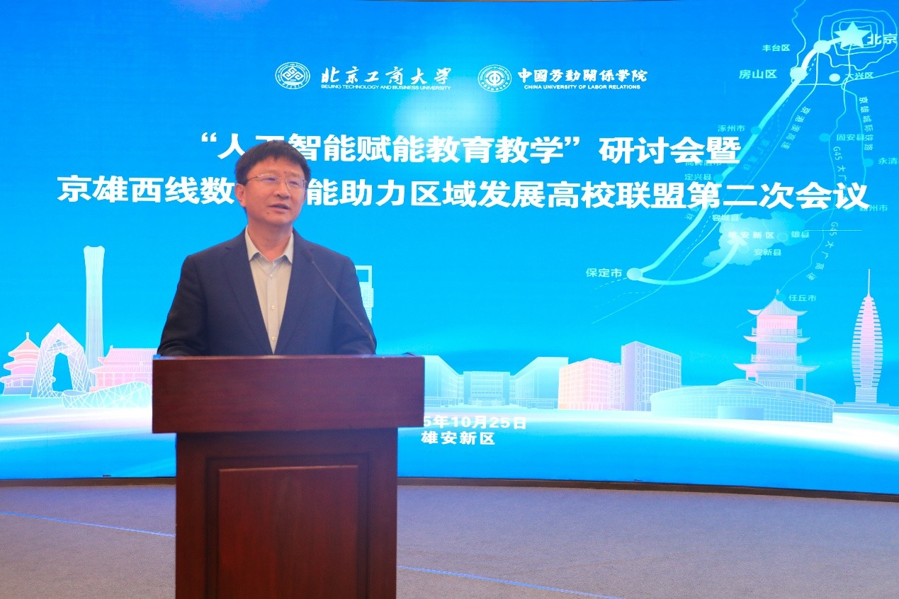 京雄西線數(shù)字智能助力區(qū)域發(fā)展高校聯(lián)盟成立于2024年9月,由我校和中國勞動關(guān)系學院牽頭發(fā)起,聯(lián)合京雄西線房山區(qū)、豐臺區(qū)、保定市等京津冀重要腹地的13所高校共同組建,旨在通過數(shù)字技術(shù)與智能手段,推動教育、產(chǎn)業(yè)、區(qū)域發(fā)展的深度融合。本次會議在鞏固前期合作成果基礎(chǔ)上,進一步聚焦人工智能賦能教育實踐路徑,推動京雄區(qū)域教育資源共享、科研成果轉(zhuǎn)化與人才協(xié)同培養(yǎng)。