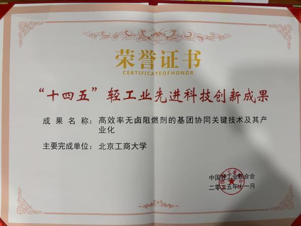 我校兩項(xiàng)科技成果入選“十四五”輕工業(yè)先進(jìn)科技創(chuàng)新成果目錄。其中,"高效率無鹵阻燃劑的基團(tuán)協(xié)同關(guān)鍵技術(shù)及其產(chǎn)業(yè)化"項(xiàng)目提出了阻燃基團(tuán)協(xié)同效應(yīng)理論并指導(dǎo)實(shí)現(xiàn)了四種雙基阻燃分子的高效率合成制備,并實(shí)現(xiàn)了工業(yè)化生產(chǎn),累計(jì)實(shí)現(xiàn)產(chǎn)值11億元以上。"傳統(tǒng)釀造白酒風(fēng)味物質(zhì)穩(wěn)定合成的功能菌群組裝發(fā)酵技術(shù)及應(yīng)用"項(xiàng)目繪制了白酒酯類物質(zhì)風(fēng)味輪,發(fā)現(xiàn)48種對白酒風(fēng)味具有貢獻(xiàn)酯類物質(zhì),通過功能微生物菌種組裝實(shí)現(xiàn)了核心風(fēng)味物質(zhì)的穩(wěn)定發(fā)酵。