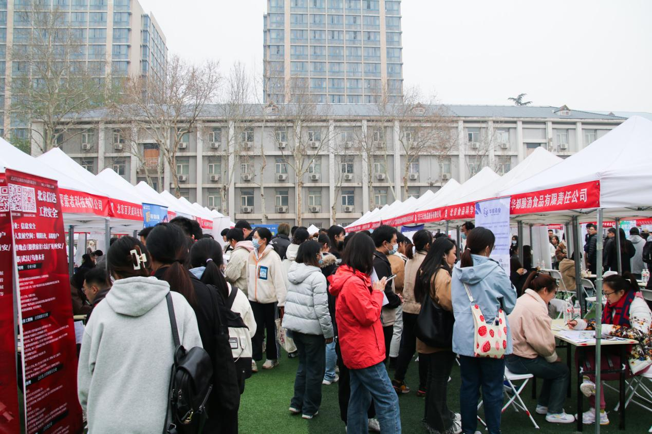 3月27日,我校2024屆春季綜合類第三場雙選會在阜成路東區操場舉行。雖春雨綿綿,但各企業仍如約而至。此次雙選會共邀請包括中國建設銀行股份有限公司北京市分行、中國郵政集團有限公司北京市分公司、北京首汽(集團)股份有限公司、北京食品科學研究院、王府井集團股份有限公司等79家用人單位參會,共為畢業生提供就業職位215個,崗位1567個。