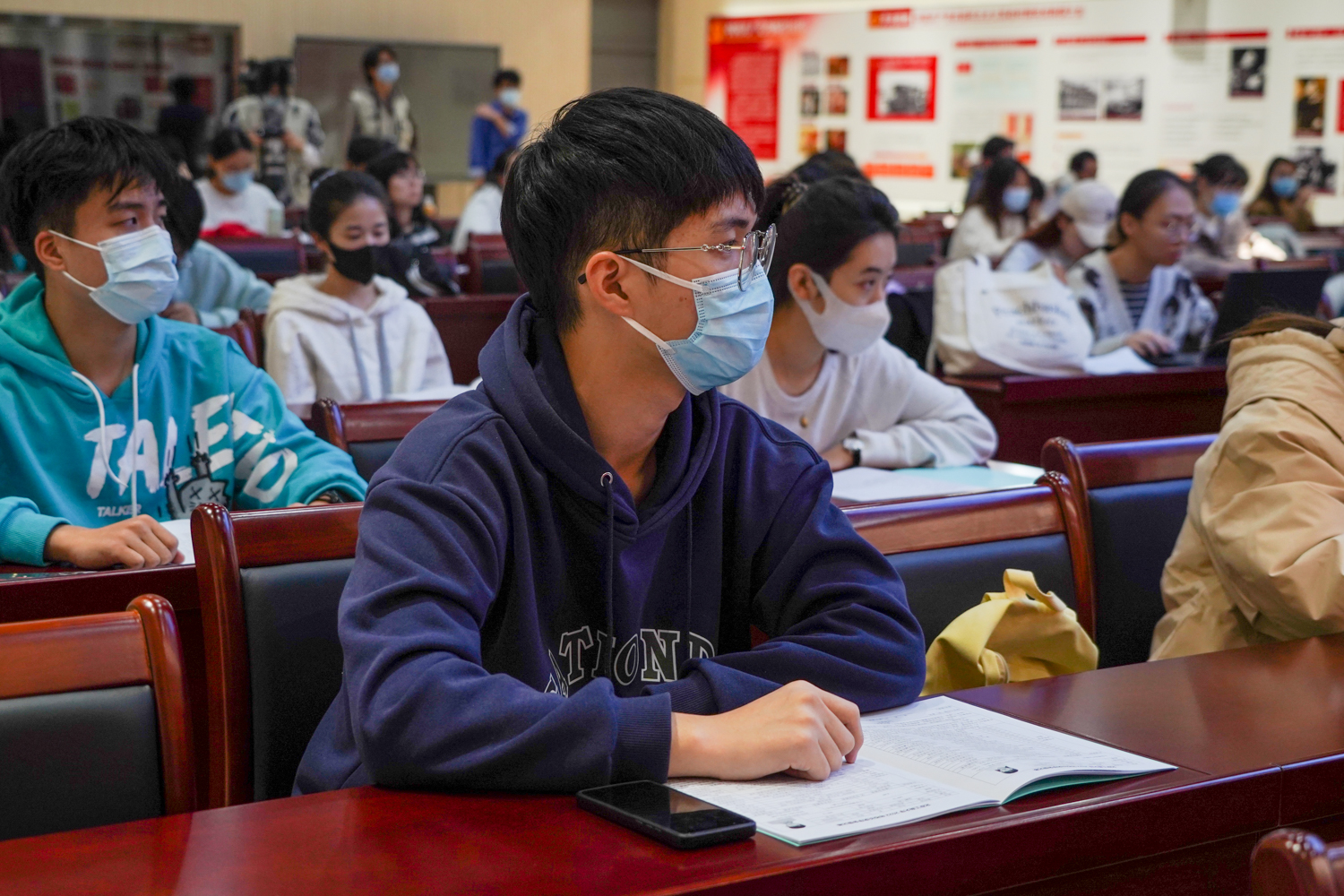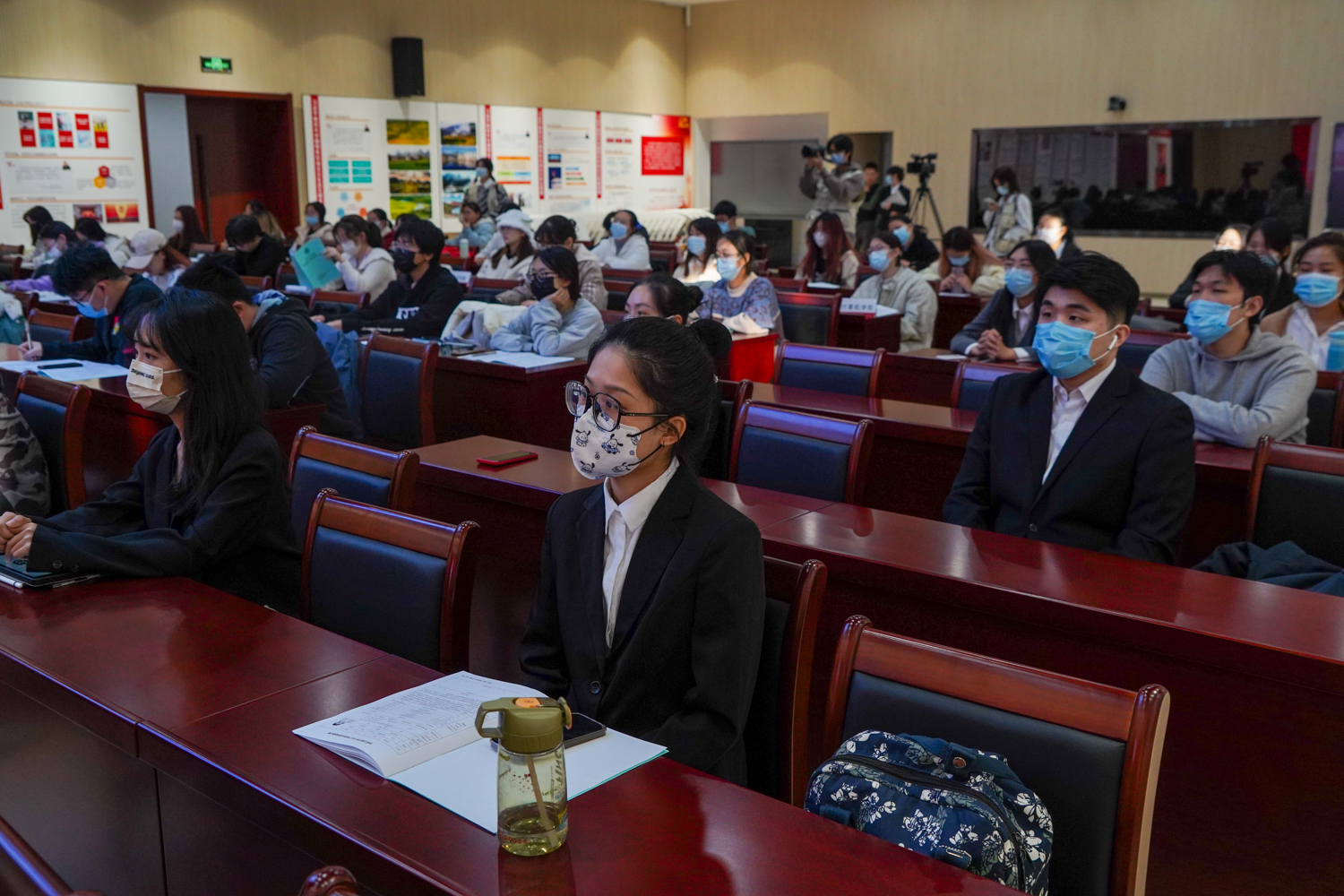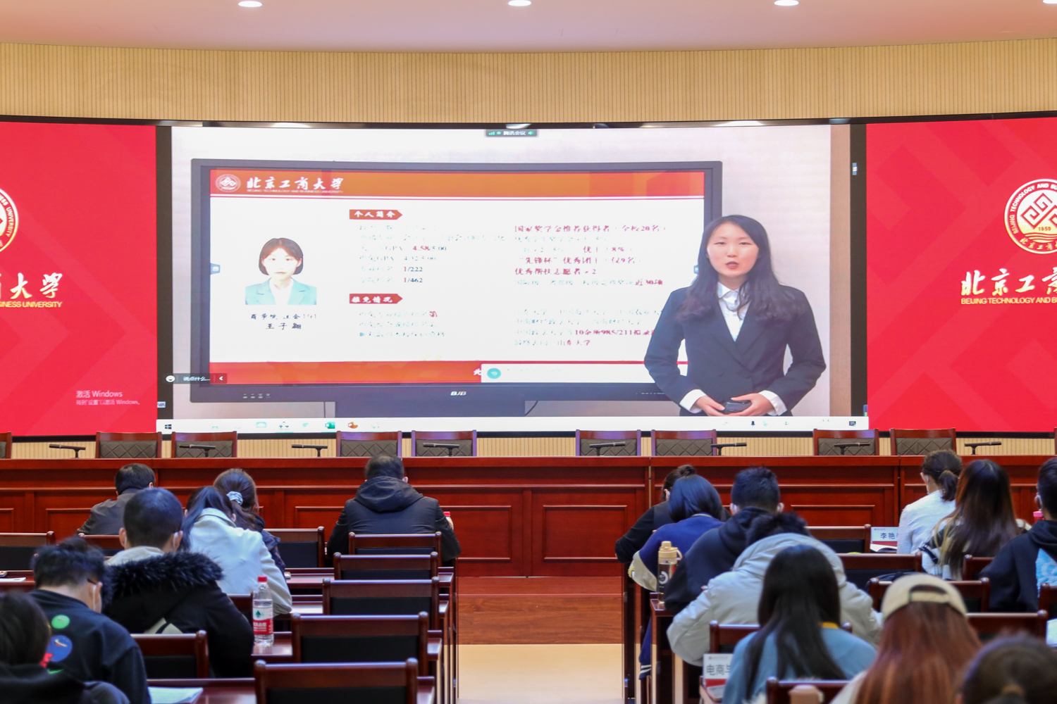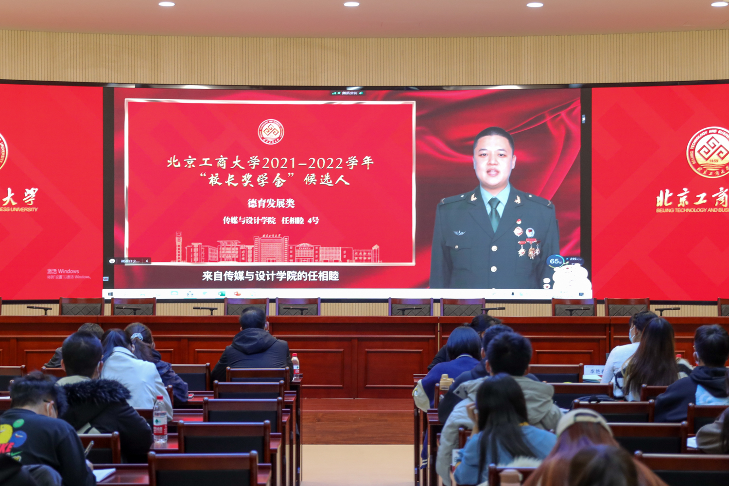 由于北京目前疫情形勢嚴峻,根據(jù)學(xué)校疫情防控相關(guān)要求,此次評審會采用線上、兩校區(qū)同步組織的形式。21位“校長獎學(xué)金”候選人錄制自我展示視頻,通過騰訊會議線上展示,教師和學(xué)生評委分別在良鄉(xiāng)校區(qū)和阜成路校區(qū)評審打分。