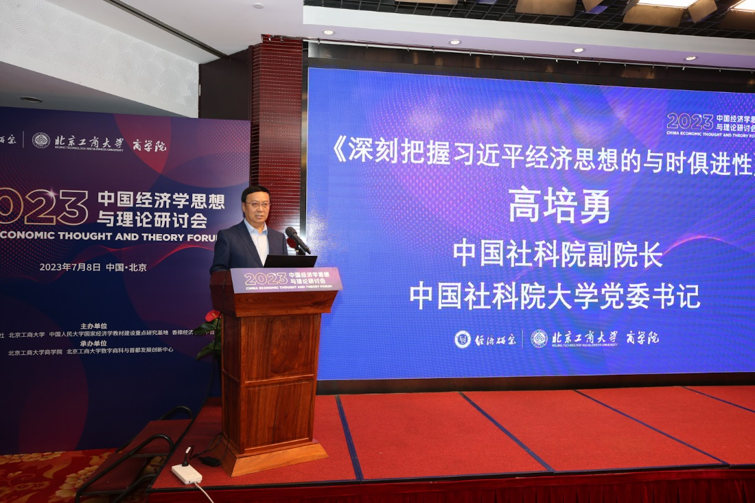 中國社會科學院副院長、中國社會科學院大學黨委書記高培勇作了題為《深刻把握習近平經濟思想的與時俱進性》的主旨演講。他闡述了新發展理念在不同時期的表述變化,總結了習近平經濟思想與時俱進性的重要體現,并對如何深刻把握習近平經濟思想提出了建議。