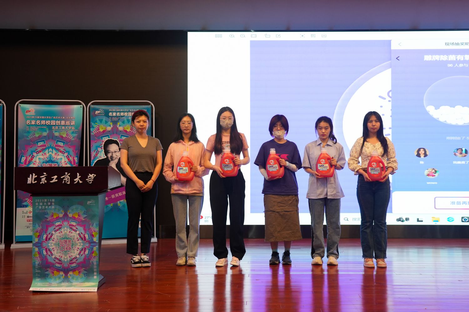 5月17日,第15屆全國大學生廣告藝術大賽北京賽區名家名師校園創意巡講在北京工商大學良鄉校區報告廳舉辦。本次活動由大廣賽北京賽區組委會主辦,傳媒與設計學院(良鄉校區)承辦。學院黨委副書記楊帥、副院長劉紅菊、廣告系主任孫銘欣、視覺傳達系主任張俊沛、數字媒體藝術系主任吳思淼,納愛斯集團華北大區總導師程雅潔女士,葵花藥業品牌主管張晶女士、葵花藥業品牌總監孫楊先生,杰爾鵬泰執行創意總監劉娜女士,大廣賽北京賽區組委會秘書長、北京服裝學院時尚傳播學院廣告學系主任周易軍,現代廣告雜志社總經理、經濟觀察報品牌營銷中心總經理蔣曉雪女士和我校相關專業師生出席本次校園創意巡講會。