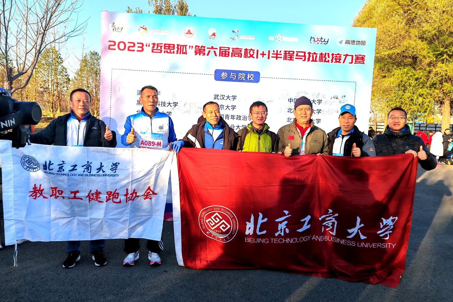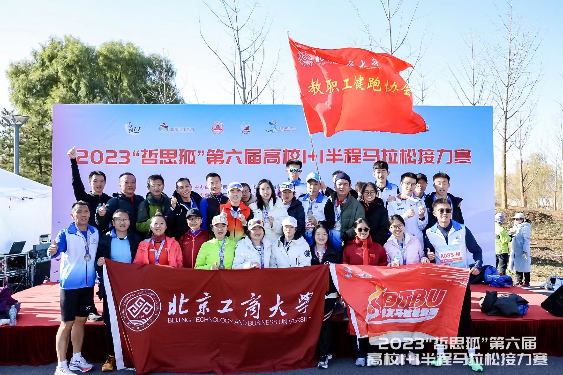 11月18日,2023第六屆高校1+1半程馬拉松接力賽在通州區(qū)城市綠心森林公園舉行。此次比賽吸引了來自清華大學(xué)、北京大學(xué)、中國人民大學(xué)、武漢大學(xué)等全國20多所高校200余組接力隊伍參賽。我校教職工健跑協(xié)會和校友馬拉松跑團(tuán)聯(lián)合組織了14隊參加比賽,由教職工健跑協(xié)會會員、校友馬拉松跑團(tuán)成員以及校田徑隊員組成。