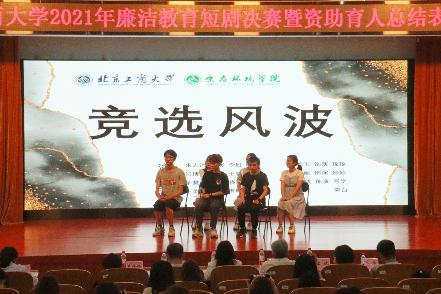 活動(dòng)在精彩的廉潔教育短劇決賽中拉開帷幕。在今年的廉潔教育活動(dòng)中,學(xué)生處首次將大學(xué)生廉潔教育與每年5月開展的誠(chéng)信教育月系列活動(dòng)相結(jié)合,組織開展以“品·廉述工商——我身邊的廉潔故事”為主題的廉潔教育短劇大賽。各學(xué)院積極參與、精心準(zhǔn)備,從腳本撰寫到演出編排全部由學(xué)生獨(dú)立完成。經(jīng)過(guò)初賽選拔,最終6個(gè)作品進(jìn)入決賽。參演作品緊緊圍繞發(fā)生在大學(xué)生身邊的誠(chéng)信考試、班級(jí)競(jìng)選、反詐防騙、過(guò)度消費(fèi)、求職簡(jiǎn)歷、清廉家風(fēng)等故事題材進(jìn)行生動(dòng)演繹,充分體現(xiàn)了廉潔和誠(chéng)信教育不僅是大學(xué)生的必修課,更是每名同學(xué)人生道路上的通行證。經(jīng)現(xiàn)場(chǎng)教師和學(xué)生評(píng)委綜合評(píng)分,數(shù)學(xué)與統(tǒng)計(jì)學(xué)院《作繭自縛》榮獲一等獎(jiǎng),化學(xué)與材料工程學(xué)院《遺憾》、傳媒與設(shè)計(jì)學(xué)院《草莓藍(lán)莓蔓越莓,小心詐騙聽到?jīng)]》獲二等獎(jiǎng),輕工科學(xué)技術(shù)學(xué)院《一份簡(jiǎn)歷》、生態(tài)環(huán)境學(xué)院《競(jìng)選風(fēng)波》、外國(guó)語(yǔ)學(xué)院《你好,趙超!》獲三等獎(jiǎng)。傳媒與設(shè)計(jì)學(xué)院新聞192班王亮、數(shù)學(xué)與統(tǒng)計(jì)學(xué)院中外20班張文欣分獲最佳男、女演員獎(jiǎng)。