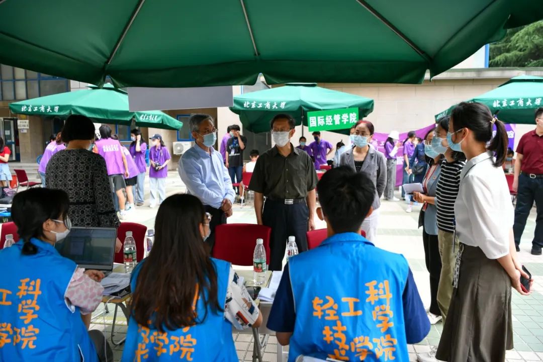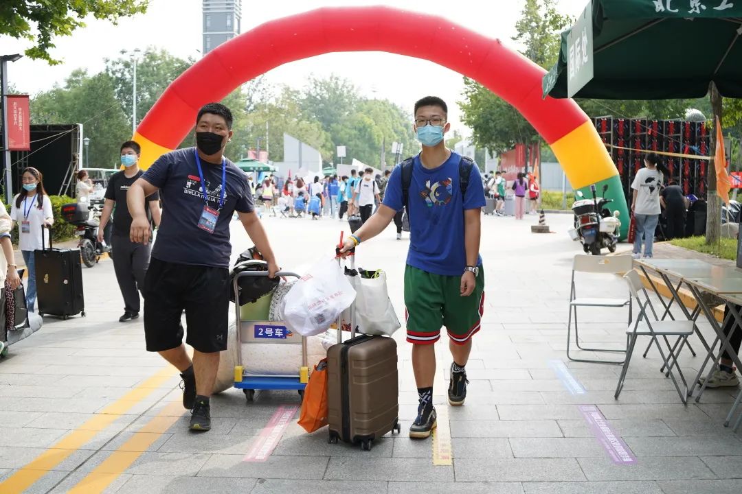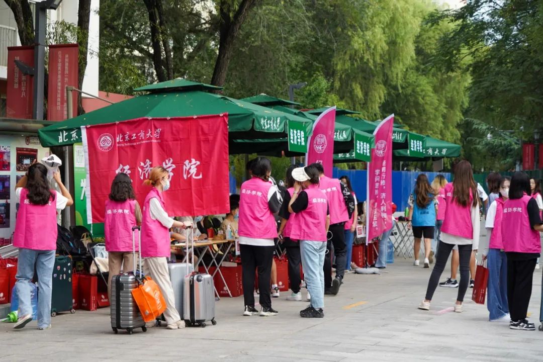 身著彩色馬甲的迎新志愿者們出現在各大交通站點,穿梭于校園人群之中,為新生們答疑指路、搬運行李,給新生們送出來自北工商的第一份溫暖,幫助新生更快更好地融入學校大家庭。經過安保人員驗證、測溫、驗證健康綠碼和行程綠碼后,新生被志愿者引導至各學院報到點。