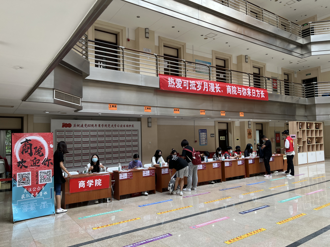 商學院在迎新現場開展了“與校園合影——打卡集印章”特色活動,鼓勵新生們探究校園特色建筑。定制商學院校園防疫順口溜小卡片,以確保疫情防控要點再次“一對一”、“點對點”傳達給每一名新生。