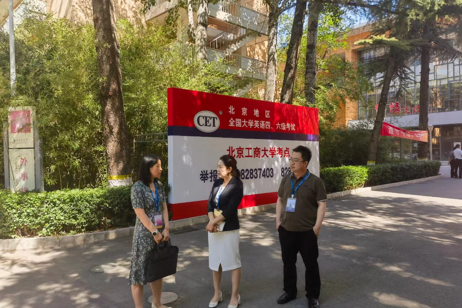 考試當天,主考徐丹丹,副主考劉艷楠、盧強來到考試現場,認真檢查考場布置、考試設備和周邊環境,指導考務和監考工作。